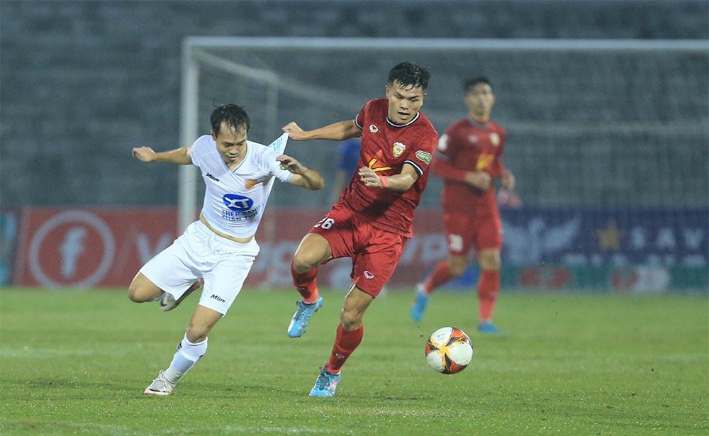 Trận đấu trên xứ sở "núi Hồng sông La" chứng kiến sức mạnh của đội bóng thành Nam. Tuy phải làm khách trên sân của CLB Hồng Lĩnh Hà Tĩnh nhưng Thép Xanh Nam Định đã có chiến thắng chung cuộc 4-2 quan trọng để giữ vững ngôi đầu bảng. Các bàn thắng của Thép Xanh Nam Định ở các phút 14, 43, 54 và 76. Phút 14, từ tình huống tấn công bên cánh phải, Văn Toàn tung ra cú sút mạnh buộc Quang Tuấn phải đẩy bóng. Tiền đạo Rafaelson kịp thời có mặt đá bồi tung lưới Hà Tĩnh, đưa Nam Định dẫn trước 1-0.