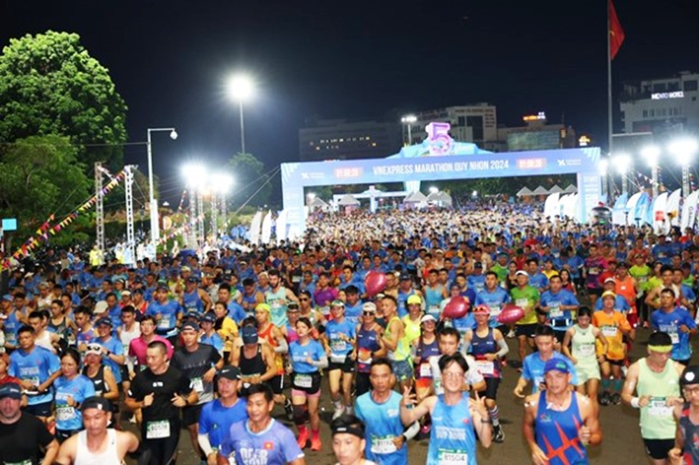 (PLVN) - Sáng 23/6/2024, thành phố Quy Nhơn rực rỡ hơn mọi ngày, đón chào sự kiện VnExpress Marathon Quy Nhơn 2024 chính thức khởi tranh với sự tham gia của hơn 8.000 VĐV ở 4 cự ly: 42 km, 21 km, 10 km và 5 km. Đây là lần thứ 5 VnExpress Marathon được tổ chức tại TP Quy Nhơn. Giải lần này có sự góp mặt của nhiều vận động viên (VĐV) từng giành thứ hạng cao ở các giải chạy lớn và một số VĐV tham gia với mục tiêu hoàn thành cự ly.