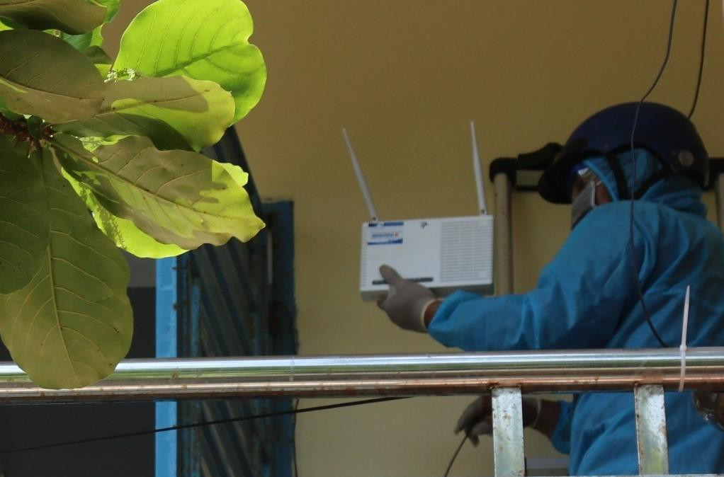 VNPT Đà Nẵng triển khai lắp đặt wifi và camera giám sát tại điểm cách ly tập trung Trường THCS Lê Độ, quận Sơn Trà. |