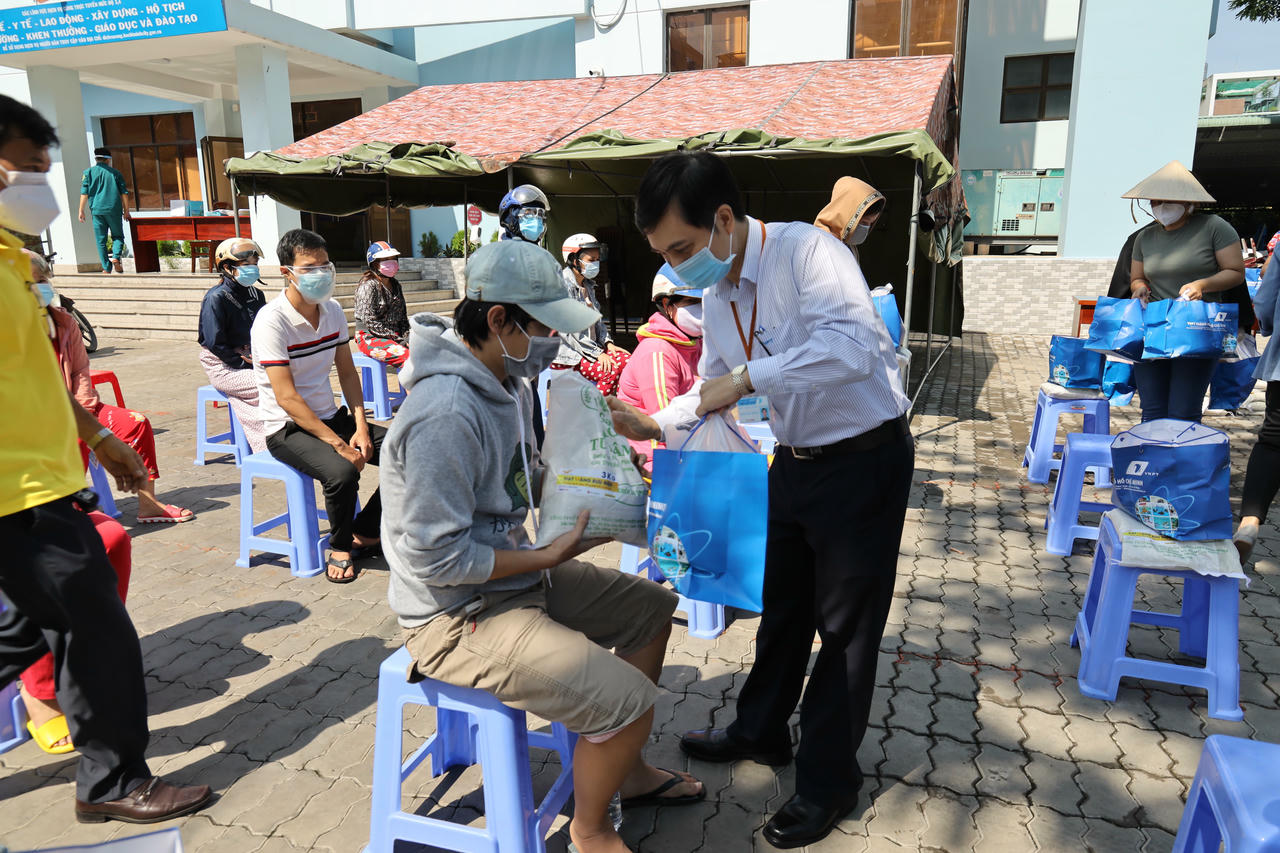 Đã có hơn 1.000 phần quà, mỗi phần trị giá 300.000 đồng của do là các nhu yếu phẩm cần thiết đã được trao tới tận tay các hộ dân sống trong các khu vực đang bị phong tỏa tại 5 phường/xã thuộc huyện Bình Chánh gặp khó khăn.