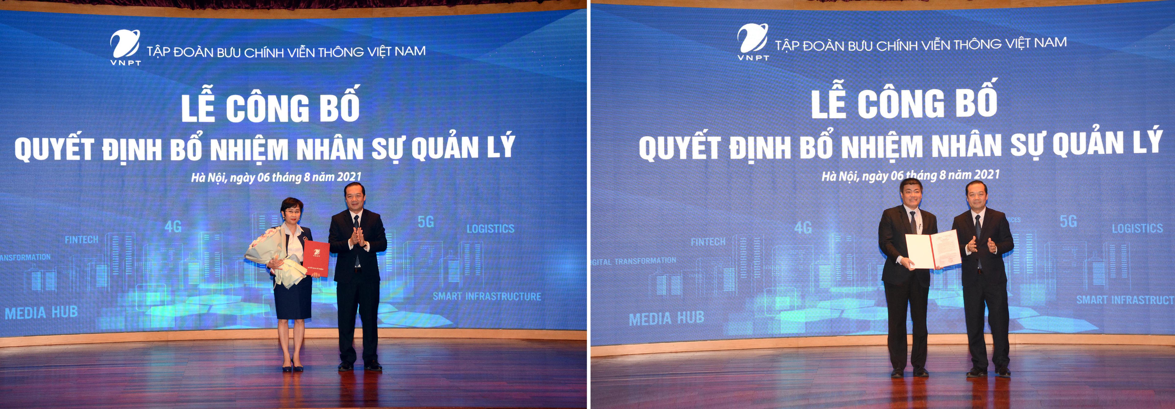 Cũng trong sáng ngày 6/8/2021, Tập đoàn VNPT đã công bố các quyết định bổ nhiệm thêm 2 Phó Tổng giám đốc Tập đoàn và lãnh đạo cấp cao của các đơn vị thành viên.