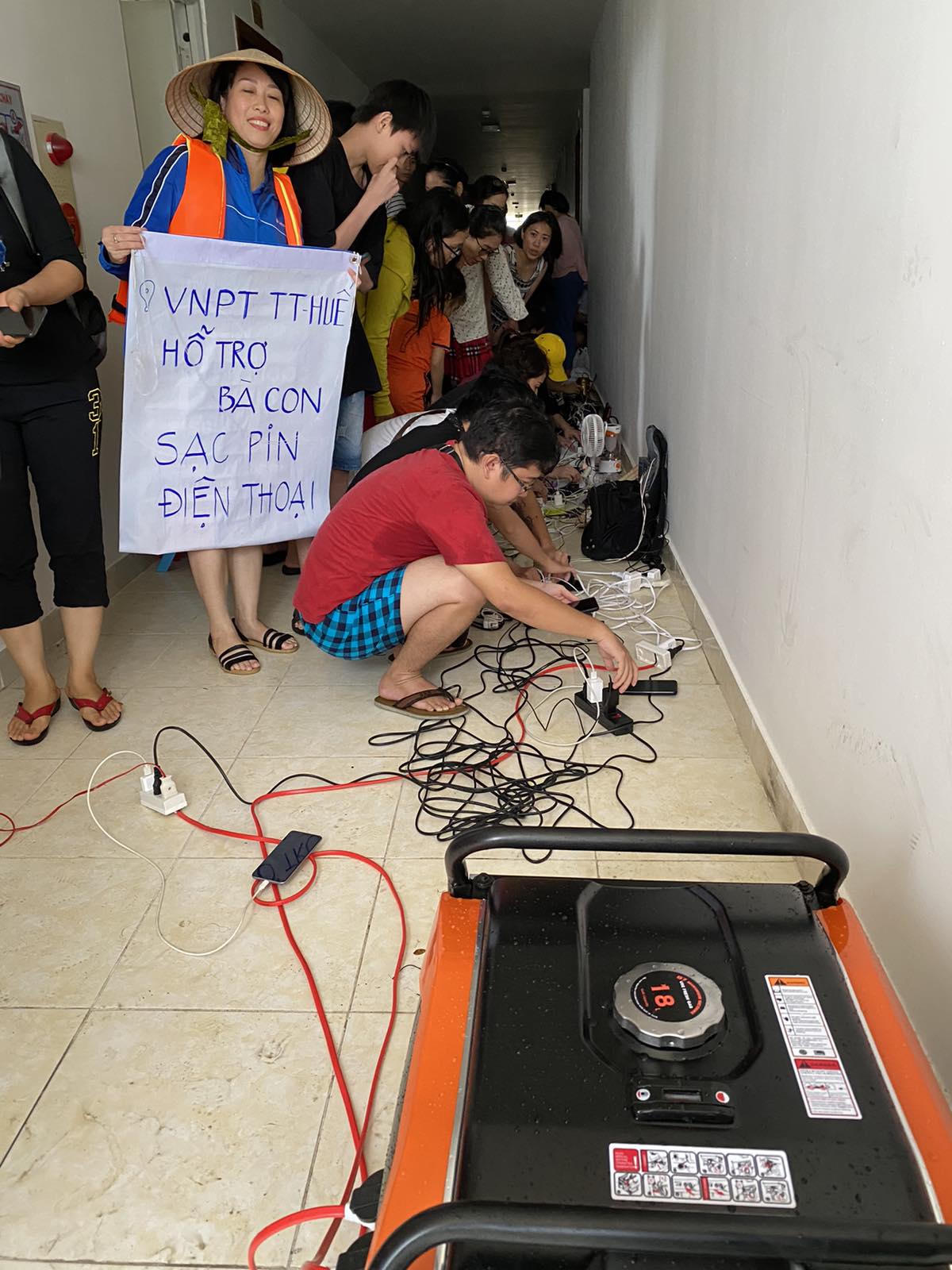 VNPT Quảng Trị, Quảng Bình, Thừa Thiên – Huế, Quảng Ngãi… đã bố trí nhân lực bám trạm, túc trực 24/7 để bảo vệ trạm và thiết bị, thực hiện ứng cứu các trạm VT/BTS bị ngập lụt, điều chuyển và chạy máy nổ hỗ trợ kịp thời các trạm bị sự cố. Cùng với đó, VNPT các tỉnh cũng đã thiết lập các điểm phục vụ bà con nạp nguồn điện thoại, đèn pin dự phòng để kịp thời cập nhật thông tin và báo động lúc khẩn cấp.