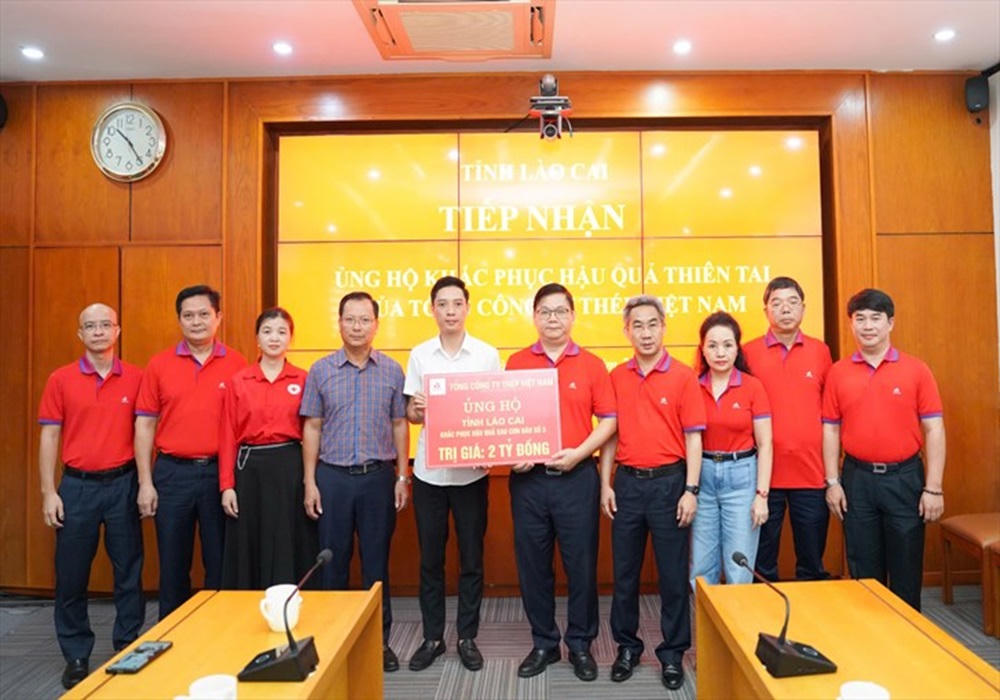 VNSTEEL ủng hộ tỉnh Lào Cai 2 tỷ đồng tiền mặt và 1 tỷ đồng hiện vật. |