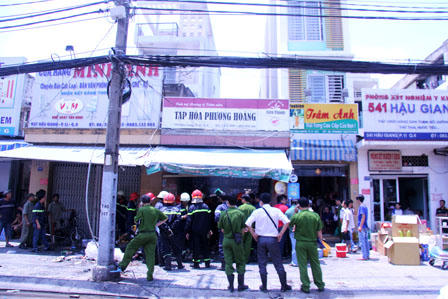 Hai người gặp nạn trong sự cố hỏa hoạn là vợ chồng anh Ngô Văn Tòng (sinh năm 1970) và vợ Nguyễn Thị Kim Phượng (sinh năm 1972). Thi thể chị Phượng đã được tìm thấy. Người còn lại đang bị vùi trong đống đổ nát.