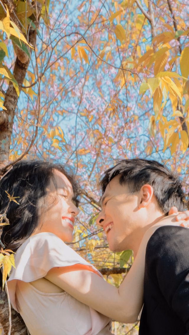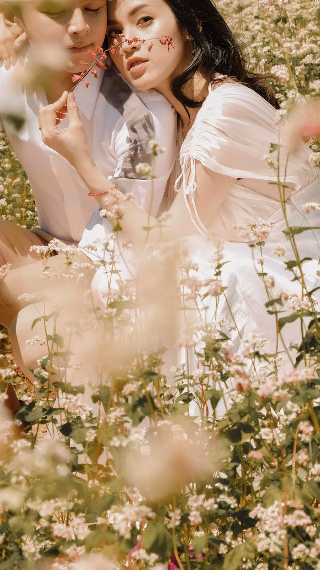 Lựa chọn bối cảnh lãng mạn, trông Tú Vi - Văn Anh chẳng khác nào cặp tình nhân lứa tuổi đôi mươi, thuở đầu hẹn hò.