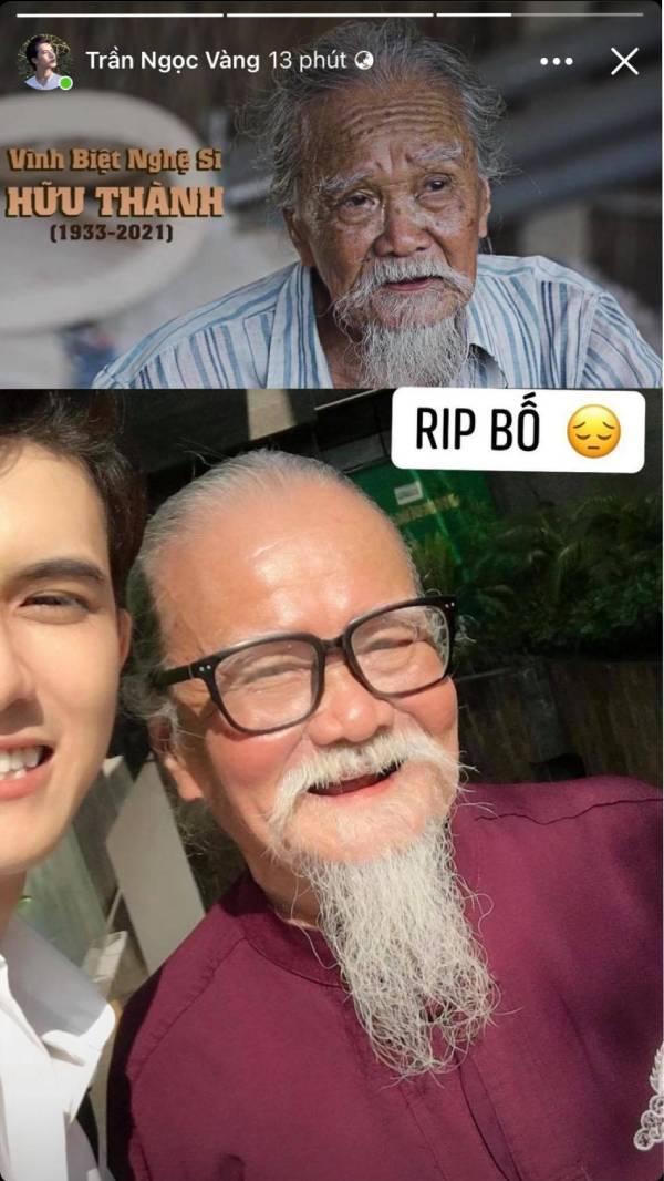 Trên trang cá nhân, diễn viên Kiều Trinh xúc động thông báo nghệ sĩ Hữu Thành qua đời. Cô buồn hơn khi vì dịch mà không thể thăm viếng ông. |