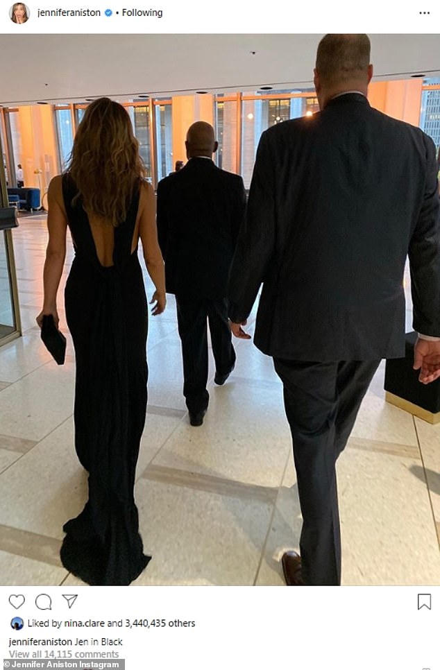 Bức hình đơn giản là hình ảnh Jennifer bước vào một sự kiện với vệ sĩ bên cạnh với chú thích "Jen in Black" đề cập đến một tựa phim nổi tiếng. Trong ảnh, Jennifer mặc chiếc váy xẻ lưng quyến rũ khoe thân hình thon gọn cùng mái tóc dài buông xõa.