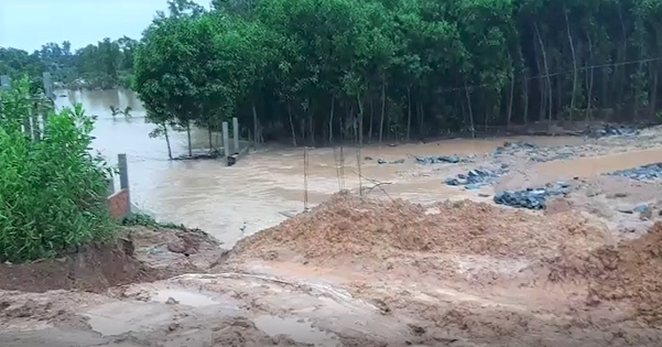 (PLVN) - Mưa lớn đã khiến một đoạn hơn 20m của thân đập Cát Bầu, thôn Mỹ Sơn, xã Duy Phú bị vỡ khiến hàng trăm ngàn m3 nước chảy xuống vùng dạ du gây ngập một số diện tích hoa màu và nhà cửa người dân.