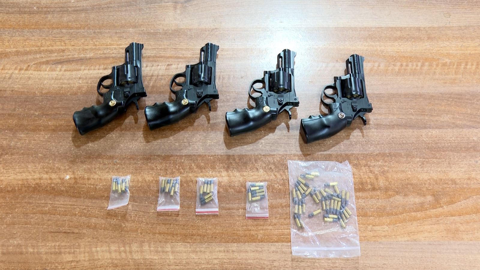 Vật chứng thu giữ gồm 4 khẩu súng (dạng súng côn quay, bên trong mỗi khẩu súng đều lắp sẵn 6 viên đạn), 34 viên đạn và các vật chứng khác có liên quan.
