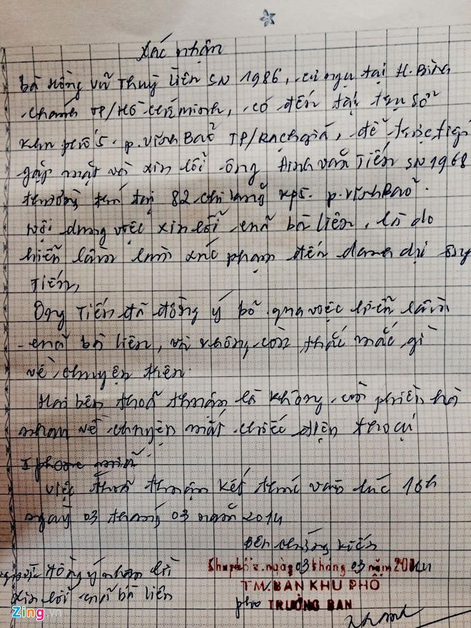Thùy Liên không ngại cung cấp những hình ảnh liên quan đến vụ việc, trong đó có bức thư xin lỗi cô gửi cho anh Đinh Văn Tiến.