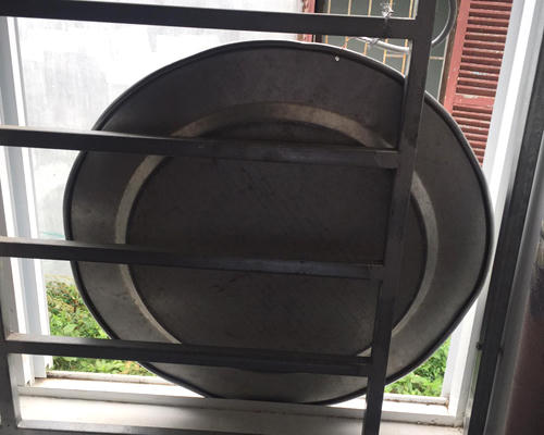 Chiếc mâm được bố Thảo dùng như một chiếc ăng-ten để thu sóng xem World Cup. Ảnh:Thu Thảo. |
