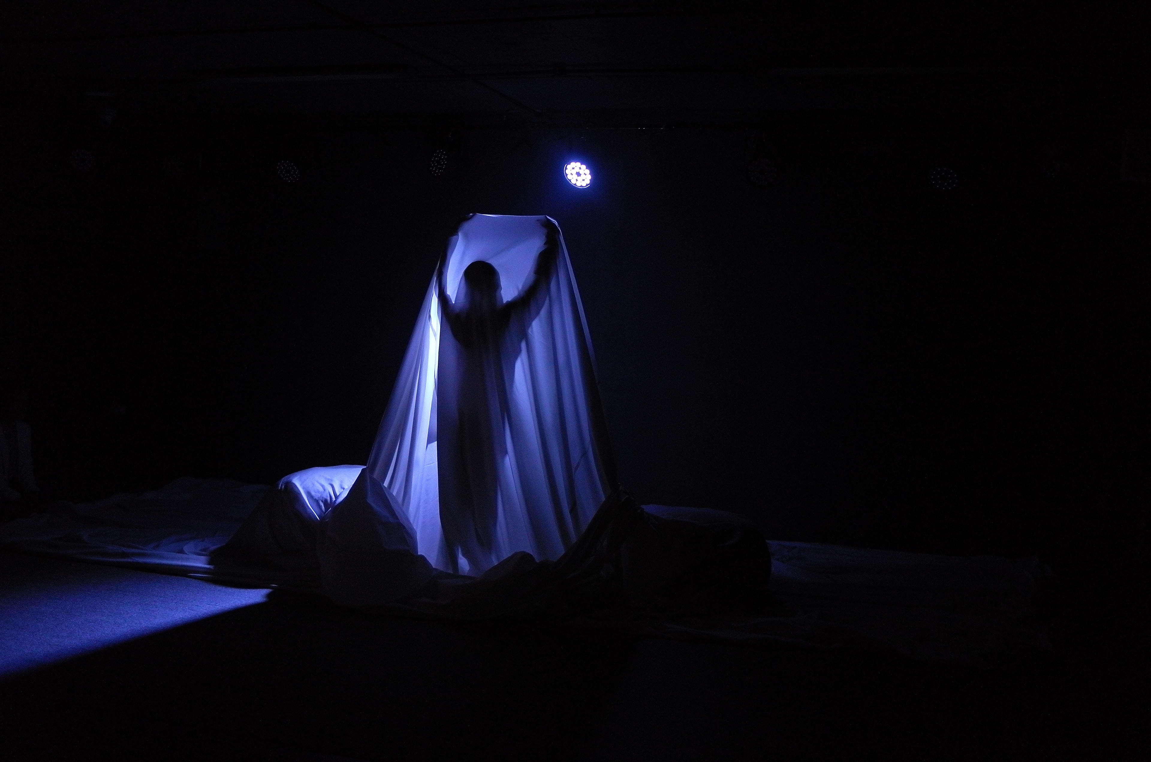 Vở kịch dùng ánh sáng âm u, có chút “hù dọa” để làm nổi bật diễn xuất hình thể của diễn viên (ảnh BTC). |