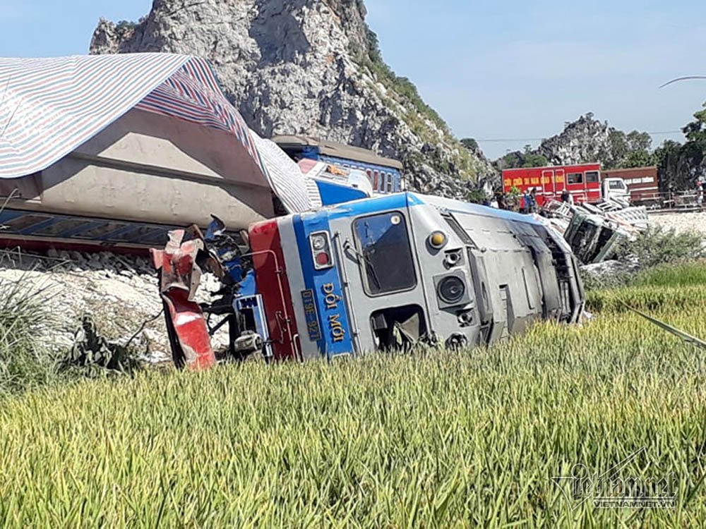 Trước đó, vào 0h30 sáng qua, đoàn tàu khách SE19 do đầu máy 927 kéo, chở theo 407 hành khách, khi đến đường ngang có gác tại Km 234+050, khu gian Khoa Trường - Trường Lâm, tuyến đường sắt Hà Nội - TP.HCM (Trường Lâm, Tĩnh Gia, Thanh Hóa) đã va chạm với xe tải chở đá BKS 37C-15138.