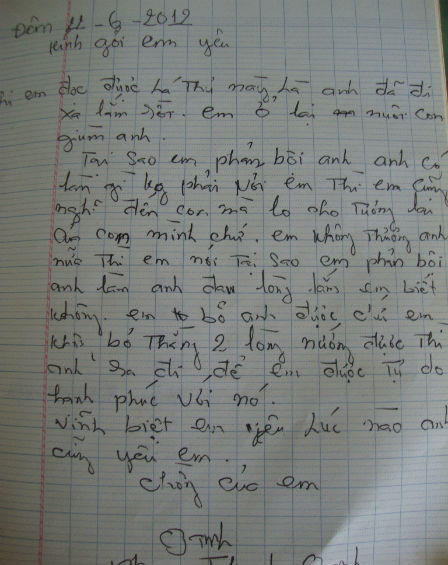 Bà Xem cung cấp thêm bức thư của con trai viết, nội dung cho rằng chị Lan đã cặp bồ với một người nào đó. Sau khi để lại bức thư, Oanh có ý định tự tử nhưng bất thành.