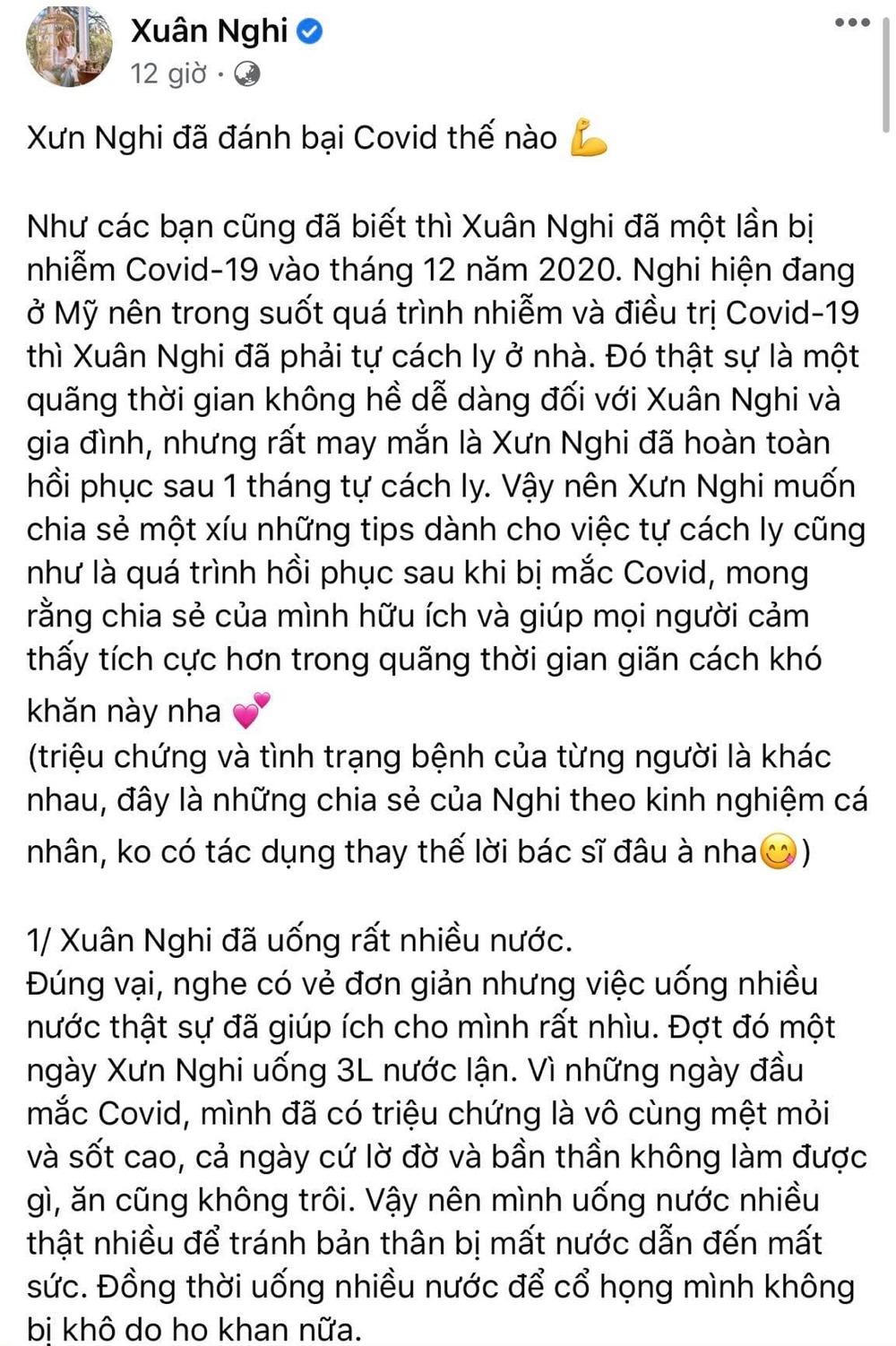Xuân Nghi chia sẻ chi tiết những điều giúp mình vượt qua Covid-19. (Ảnh: Chụp màn hình) |