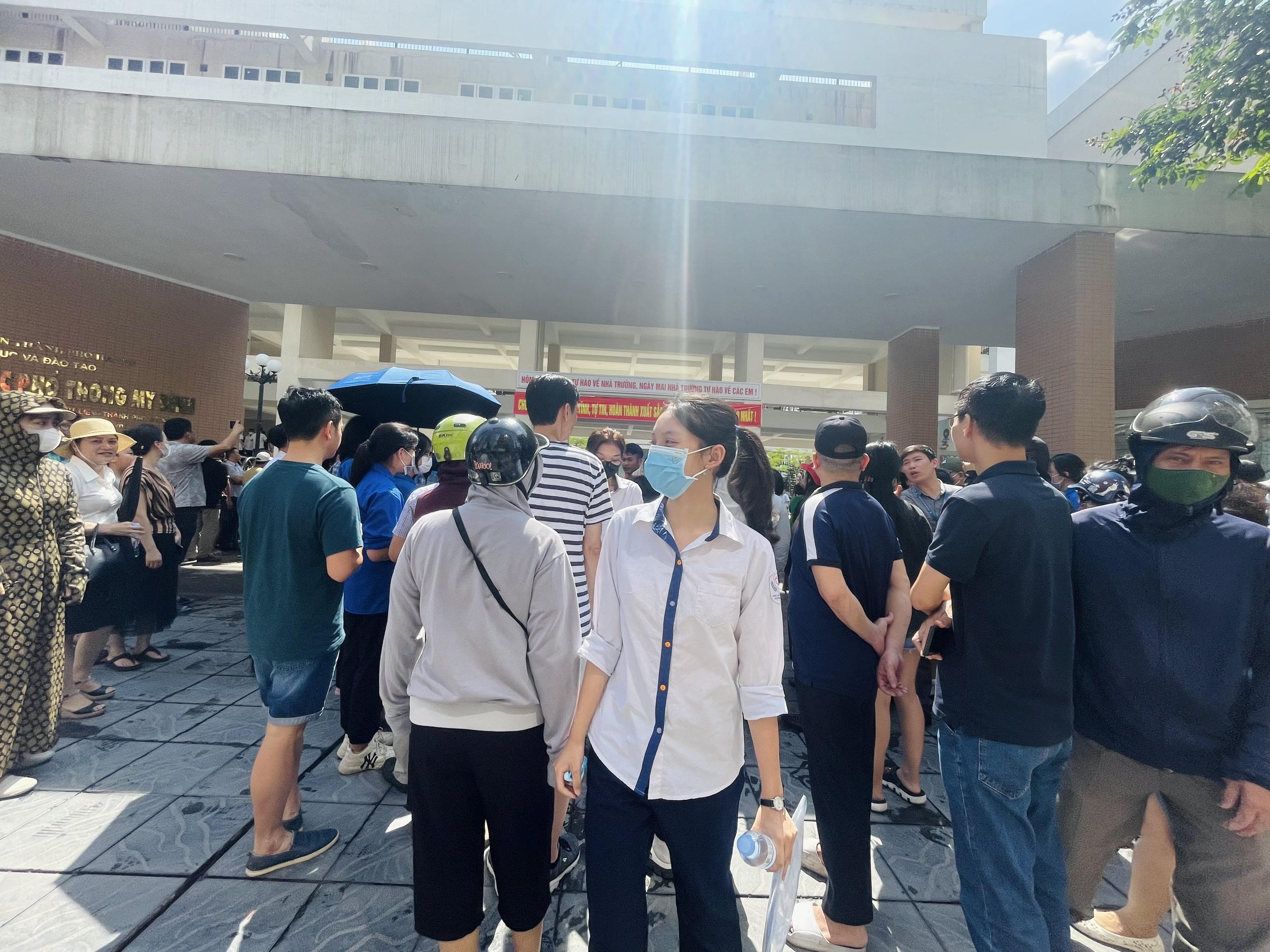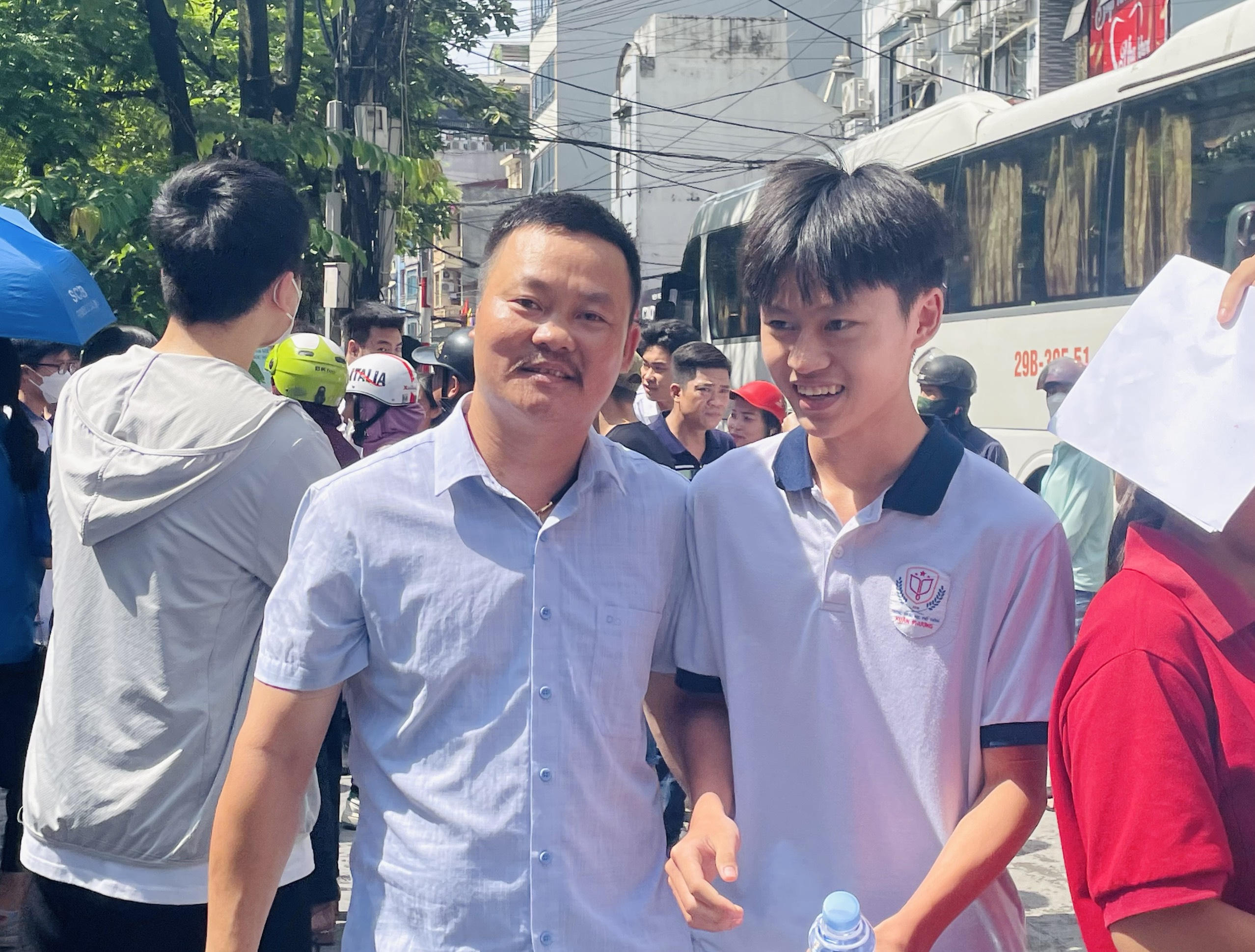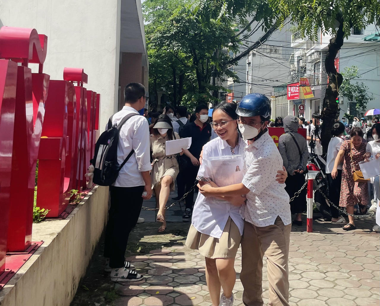 Phụ huynh và sĩ tử Hà Nội vui mừng khi hoàn thành xong môn thi đầu tiên. |