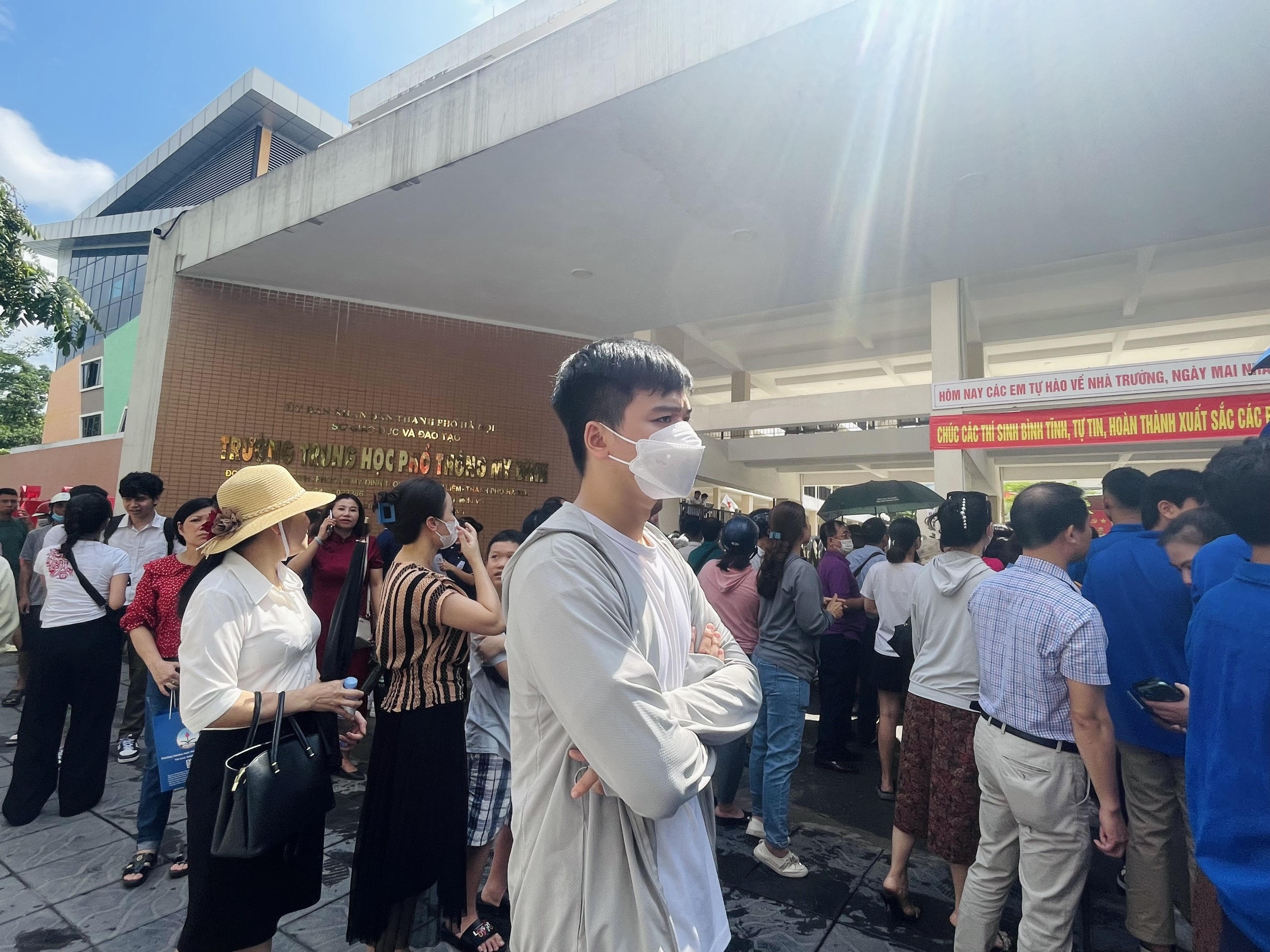 Mặc dù buổi sáng sớm trước khi kỳ thi diễn ra, thời tiết Hà Nội có mưa, nhưng sau khi kết thúc bài thi đầu tiên, trời lại nắng khá gay gắt. |