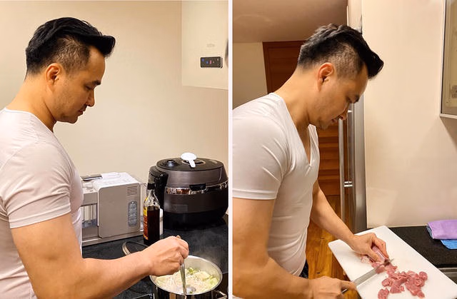 Hình ảnh nam diễn viên vào bếp cũng là hình ảnh thường thấy của các sao Việt trong thời gian gần đây. Các sao nam thể hiện sự đảm đang và khéo léo không thua gì cánh phụ nữ.