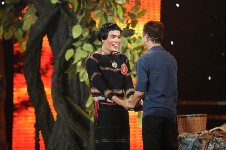 (PLO) - Với tiết mục “Chuyện tình Bơ Lang” do đạo diễn Diệp Tiên làm cố vấn, thí sinh Võ Tấn Phát đã khiến cho 2 nữ giám khảo cười liên tục trên ghế nóng. Nhiều lần NSND Hồng Vân gục xuống bàn cười, còn danh hài Việt Hương thì xua tay vì chịu không nổi trước nhan sắc “xấu lạ” của anh chàng.