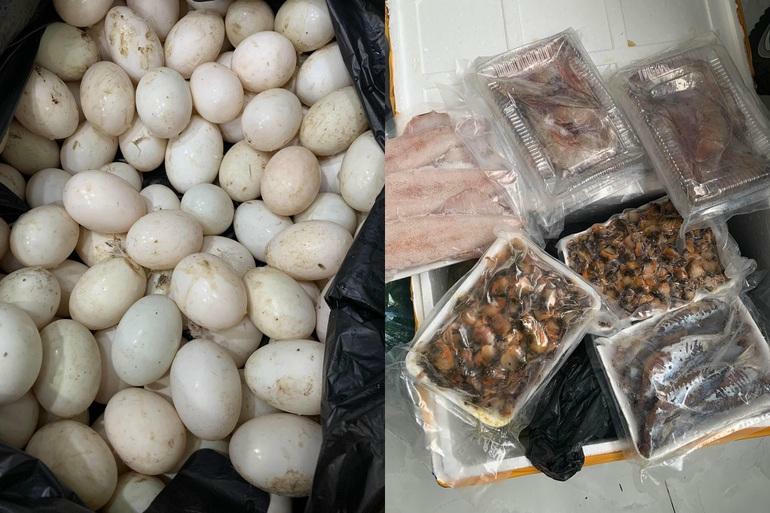 Đều đặn mỗi tháng, chị N. lại được bố mẹ hai bên tiếp tế đồ ăn với đủ loại thực phẩm đa dạng như rau, trứng, thịt lợn, cá,.... (Ảnh: N.N).
