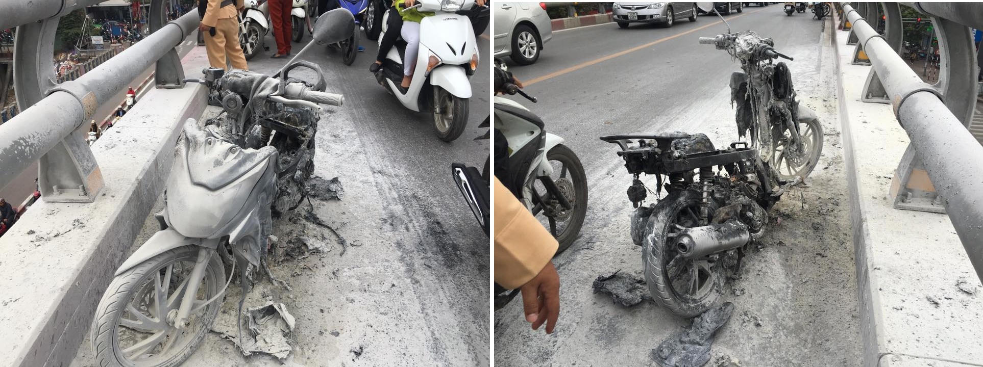 Khoảng hơn 8h hôm nay (6/1), chiếc xe tay ga do một người đàn ông trung tuổi tên Tuyến điều khiển đi theo hướng từ đường Lê Văn Lương sang Láng Hạ. Khi xe lên cầu vượt Lê Văn Lương thì bất ngờ khói bốc ở đầu xe.