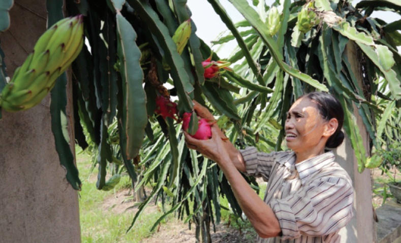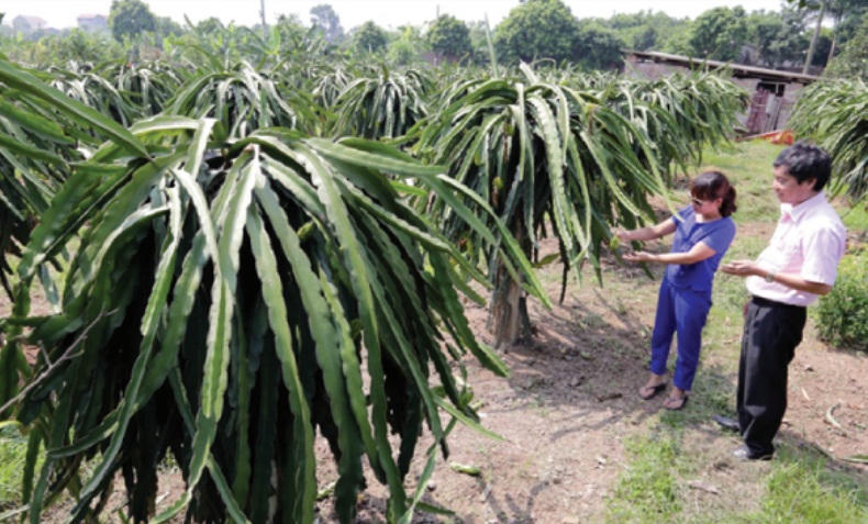 | Gia đình ông Đặng Ngọc Thạch ở thôn Cát Lư, xã Chỉ Đạo, huyện Văn Lâm vay vốn chương trình giải quyết việc làm đầu tư trồng cây thanh long cho thu nhập cao hơn trồng màu