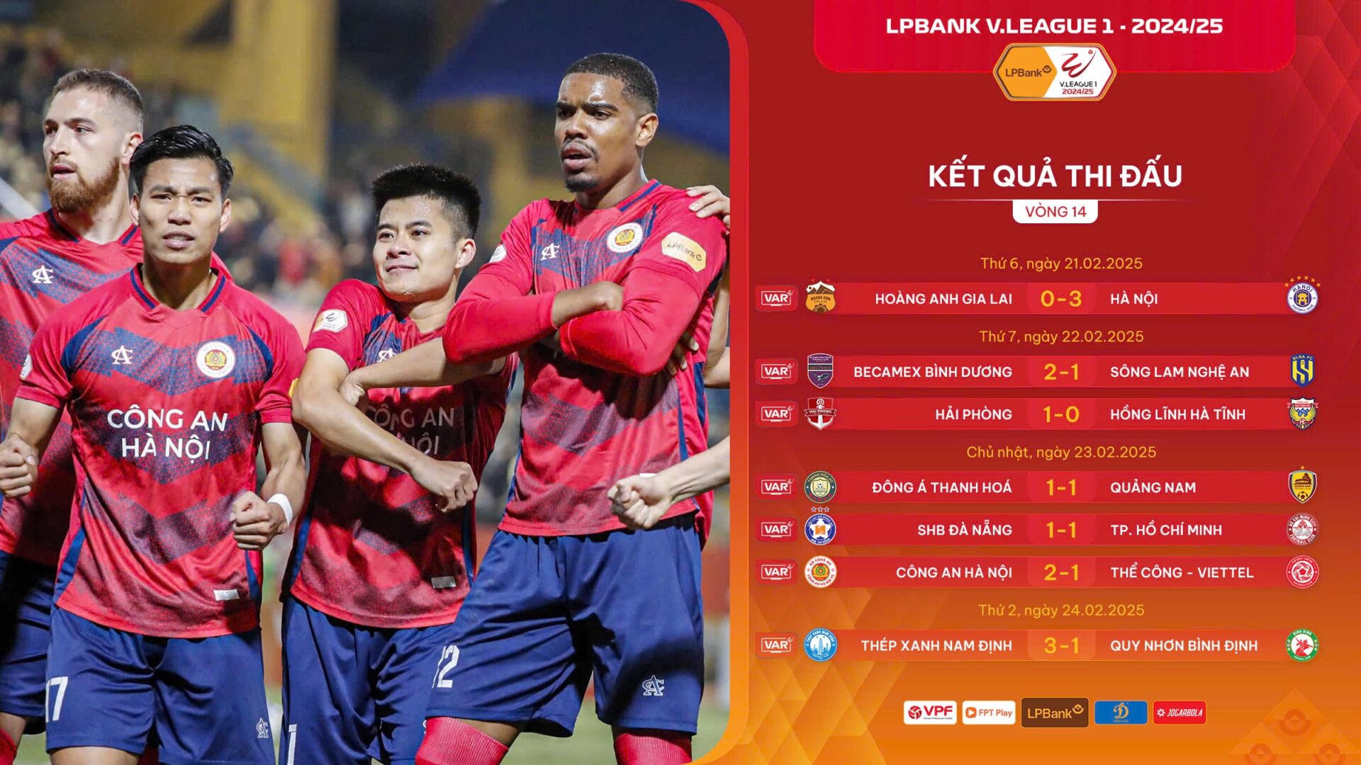 Vòng 14 không chỉ chứng kiến sự trở lại của Công an Hà Nội mà còn đánh dấu màn tái xuất của một loạt ứng viên như Thép Xanh Nam Định, Hà Nội FC hay cả Becamex Bình Dương. Ở trận đấu muộn nhất của vòng 14 - ngày 24/2, tuy vẫn chưa giải được bài toán nhân sự thay thế Nguyễn Xuân Son nhưng các cầu thủ nội của Thép Xanh Nam Định đã thay nhau toả sáng để đem về chiến thắng 3-1 cho đội bóng chủ sân Thiên Trường.