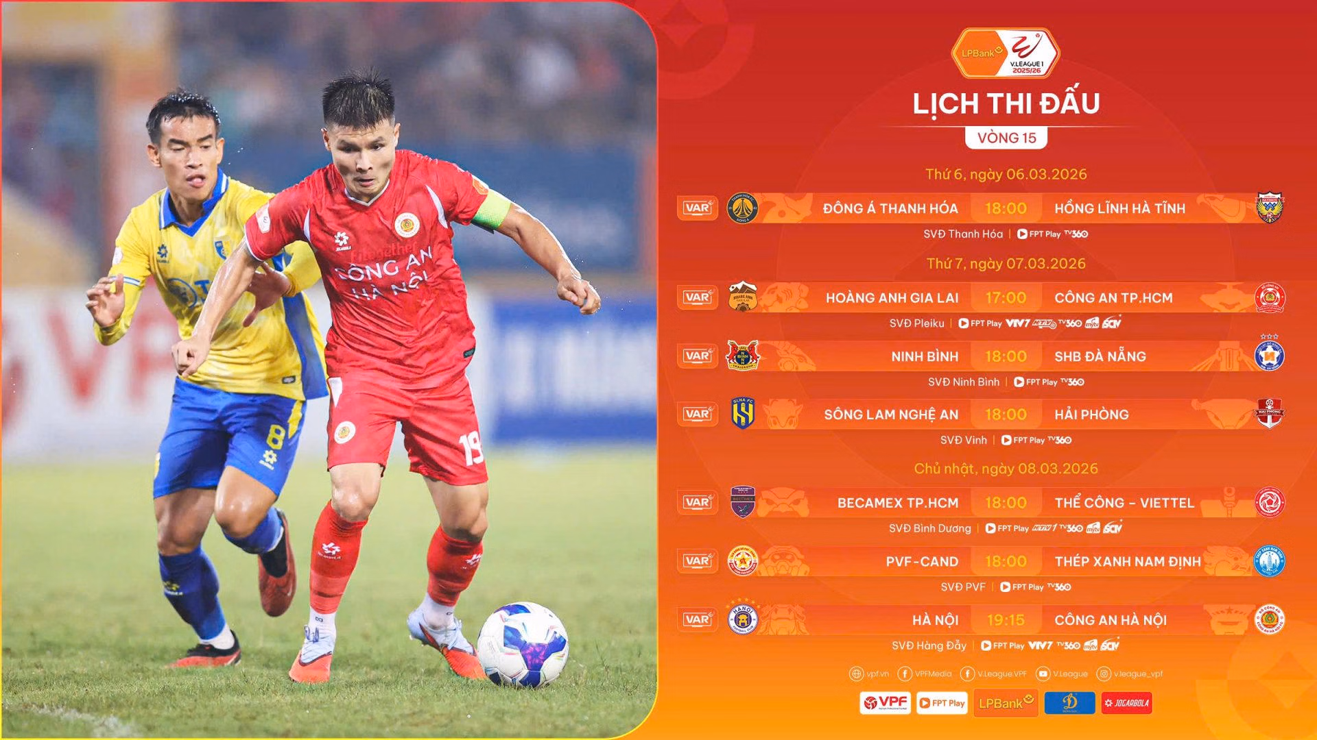 3 trận tiếp vòng 15 V.League 2025/26 được tiến hành vào ngày Thứ 7 (7/3).