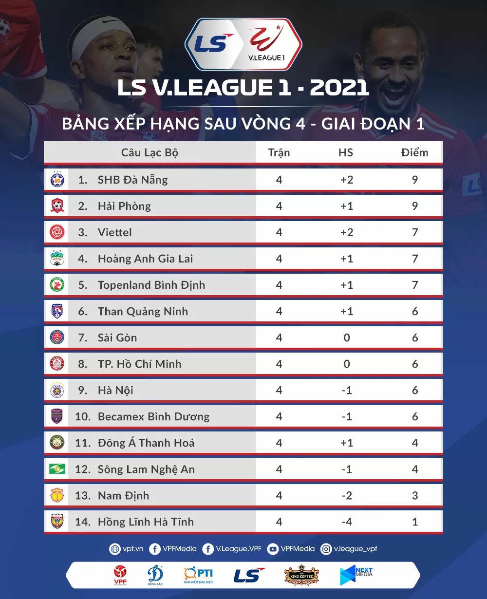 Vòng 4 V.League 2021: SHB Đà Nẵng 'sảy chân', Hải Phòng cân bằng điểm số