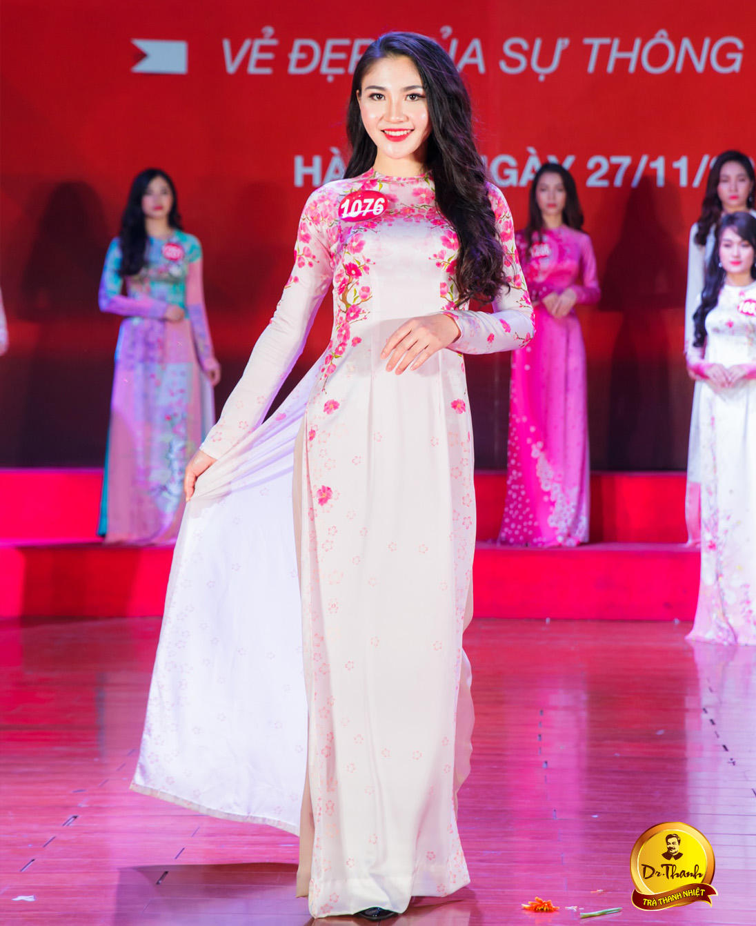 Tiếp nối phần thi tài năng là phần thi trình diễn trang phục áo dài. Trong bộ áo dài truyền thống, các nữ sinh đã khoe vóc dáng đầy khỏe khoắn và thần thái tươi tắn, rạng ngời.