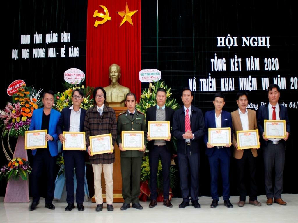 Nhân dịp này, thừa ủy quyền của Thủ tướng Chính phủ, ông Hò An Phong đã trao bằng khen của Thủ tướng Chính phủ cho tập thể Trung tâm Cứu hộ, bảo tồn và phát triển sinh vật (đơn vị trực thuộc Ban quản lý Vườn). Lãnh đạo Ban quản lý VQG Phong Nha – Kẻ Bàng cũng đã trao giấy khen cho 17 tập thể và 155 cá nhân có thành tích xuất sắc trong công tác năm 2020.