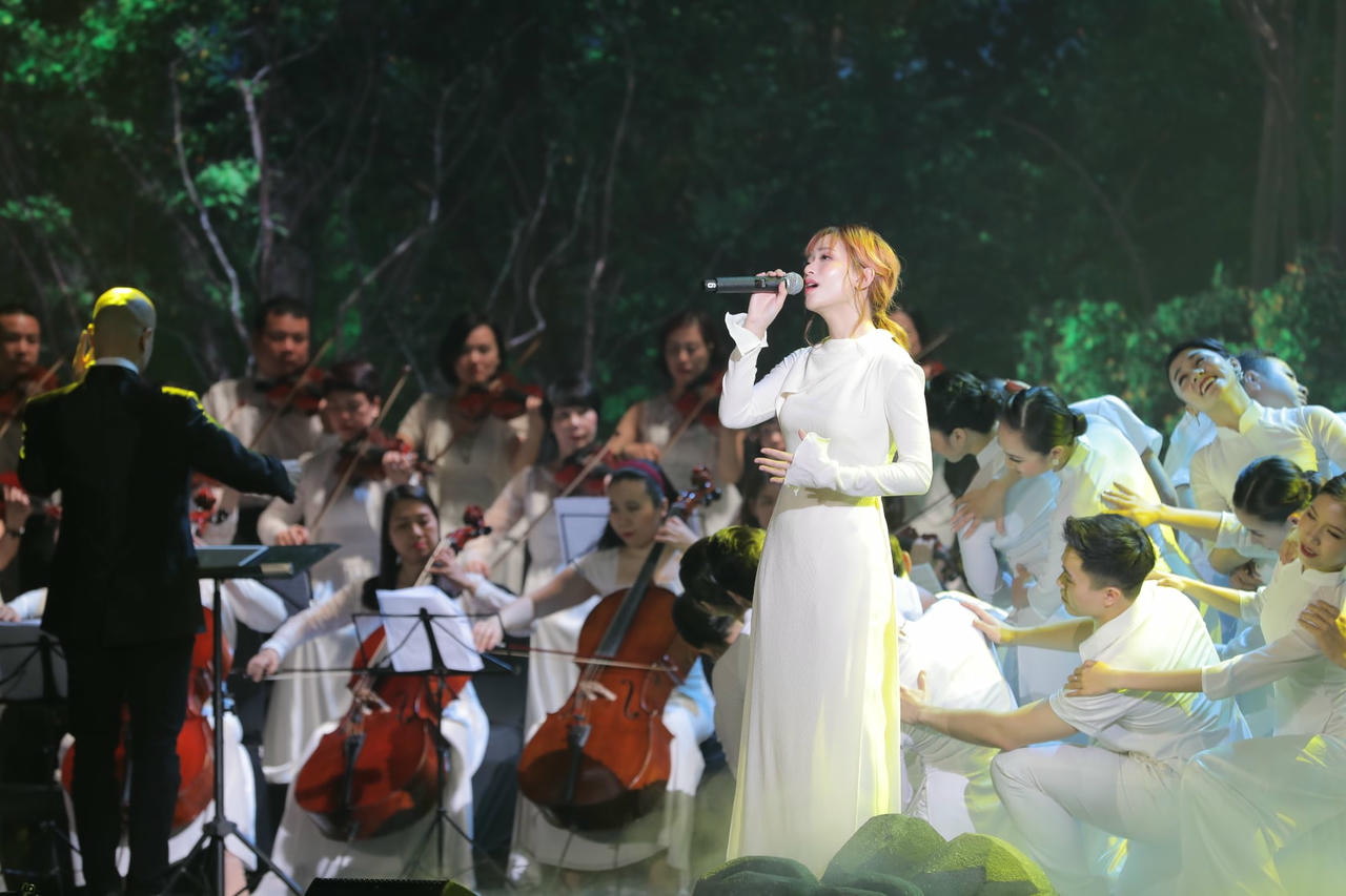 Điểm nhấn là những âm thanh từ thiên nhiên, đặc biệt là Nước, kết hợp với âm nhạc qua các nhạc cụ như kèn lá, sáo trúc, đàn đá, trống. Có cả tiếng động chuyển mình của đá, của đất, của tiếng lá cây, tiếng mưa gió kết hợp với nhạc cụ hiện đại.