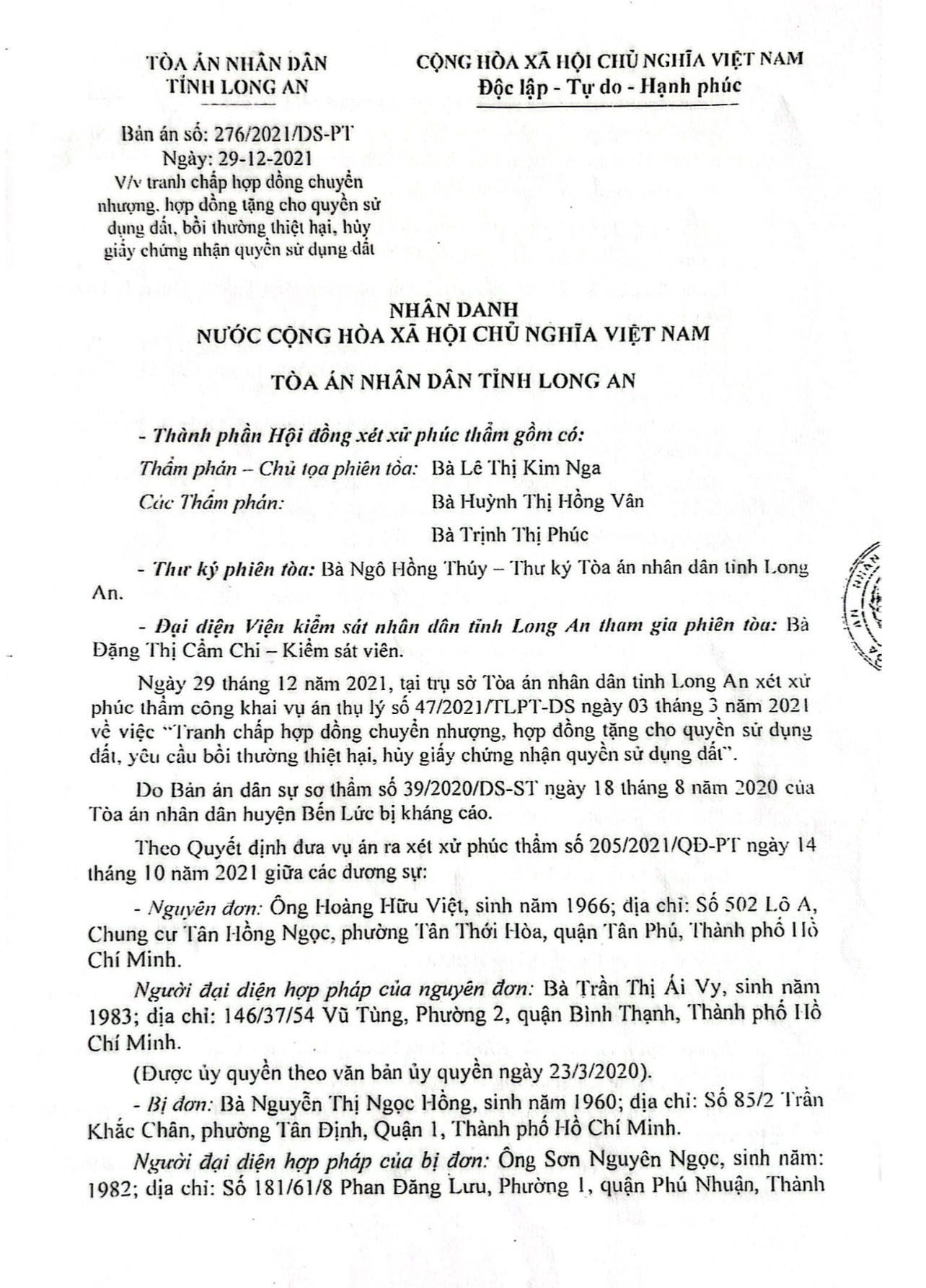 Bản án của TAND tỉnh Long An. |