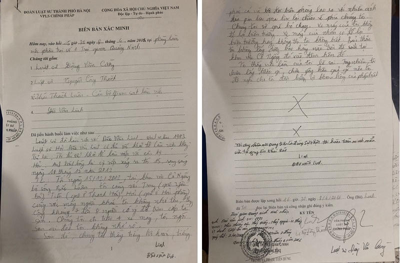 Theo biên bản xác minh của VPLS Chính Pháp, Đoàn LS TP Hà Nội thì vào khoảng 15h30 ngày 8/6/2016, tại phòng làm việc phân trại số 01, trại giam Quảng Ninh, LS Đặng Văn Cường và Nguyễn Công Thành đã làm việc với Đào Văn Linh trong sự giám sát của ông Thái Thành Luân – Cán bộ trại giam tỉnh Quảng Ninh.