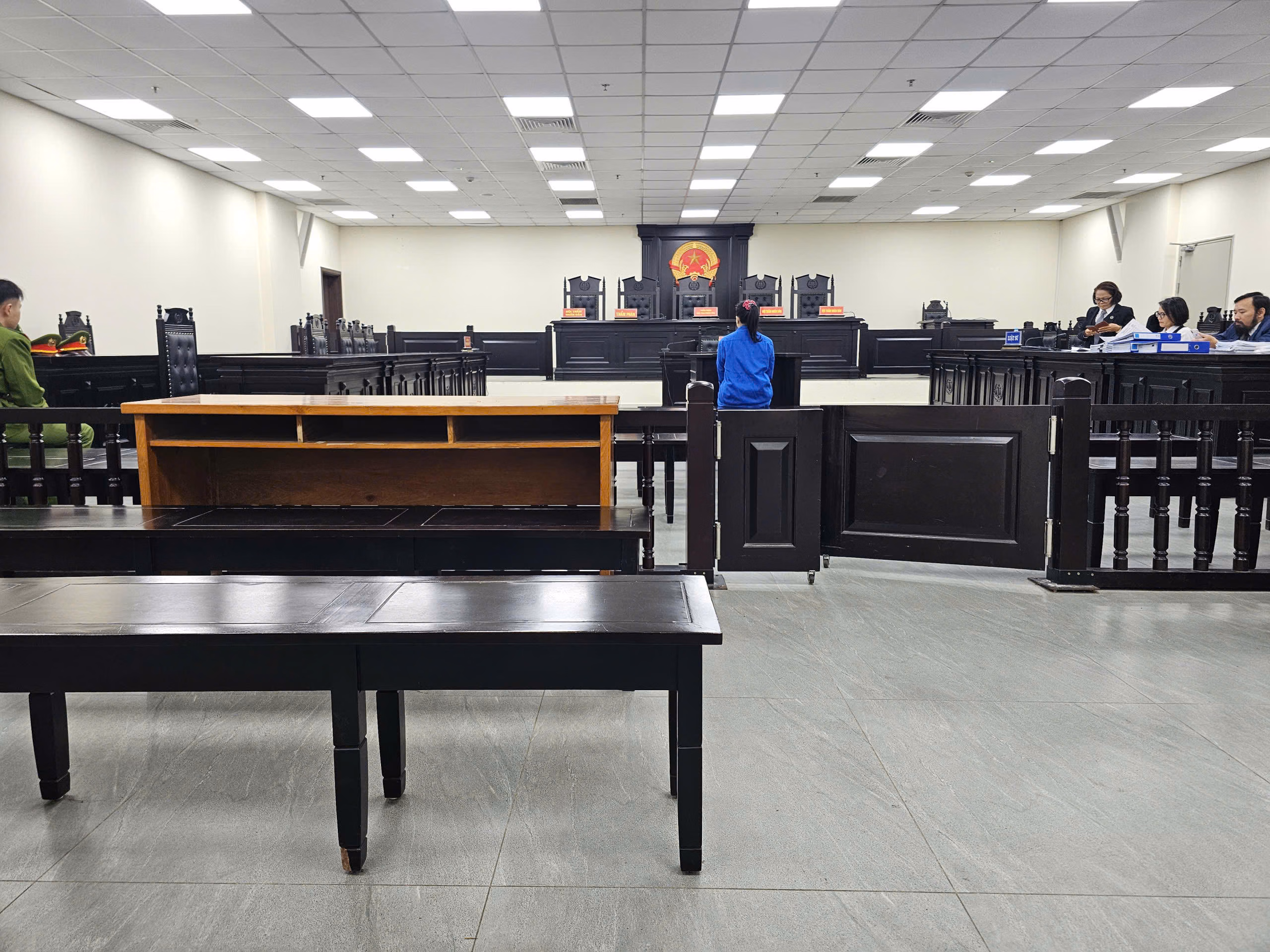 Tại phần làm thủ tục, thư ký tòa thông báo vắng mặt luật sư bào chữa cho bị cáo Nhung, nhiều bị hại, người có quyền lợi nghĩa vụ liên quan. Đại diện Viện Kiểm sát cho hay, việc vắng mặt luật sư của bị cáo Nhung sẽ không đảm bảo quyền lợi khi xét xử nên đề nghị hoãn phiên.