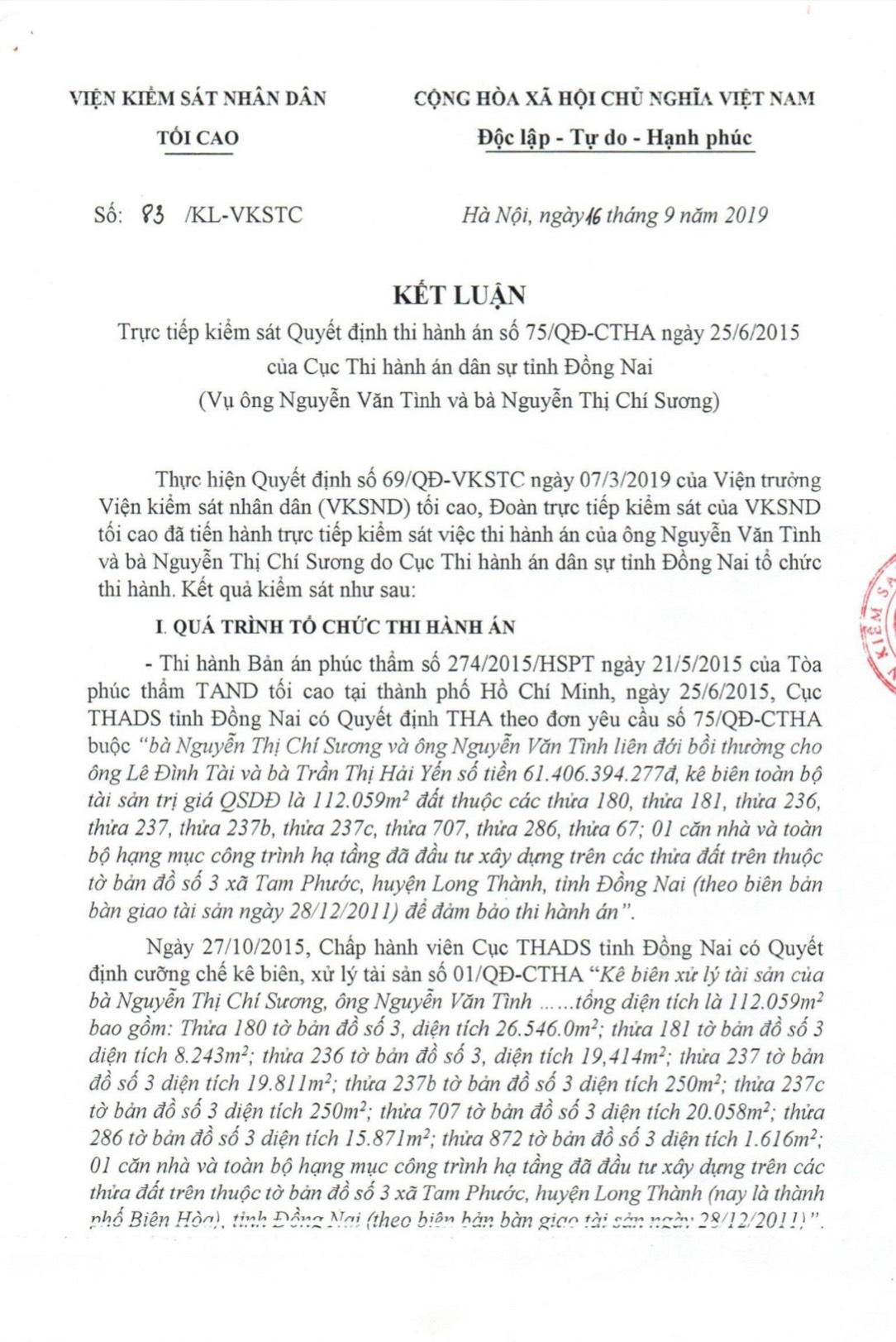 VKSNDTC từng ra kết luận kiểm sát việc thi hành án với vụ án xôn xao Đồng Nai. |