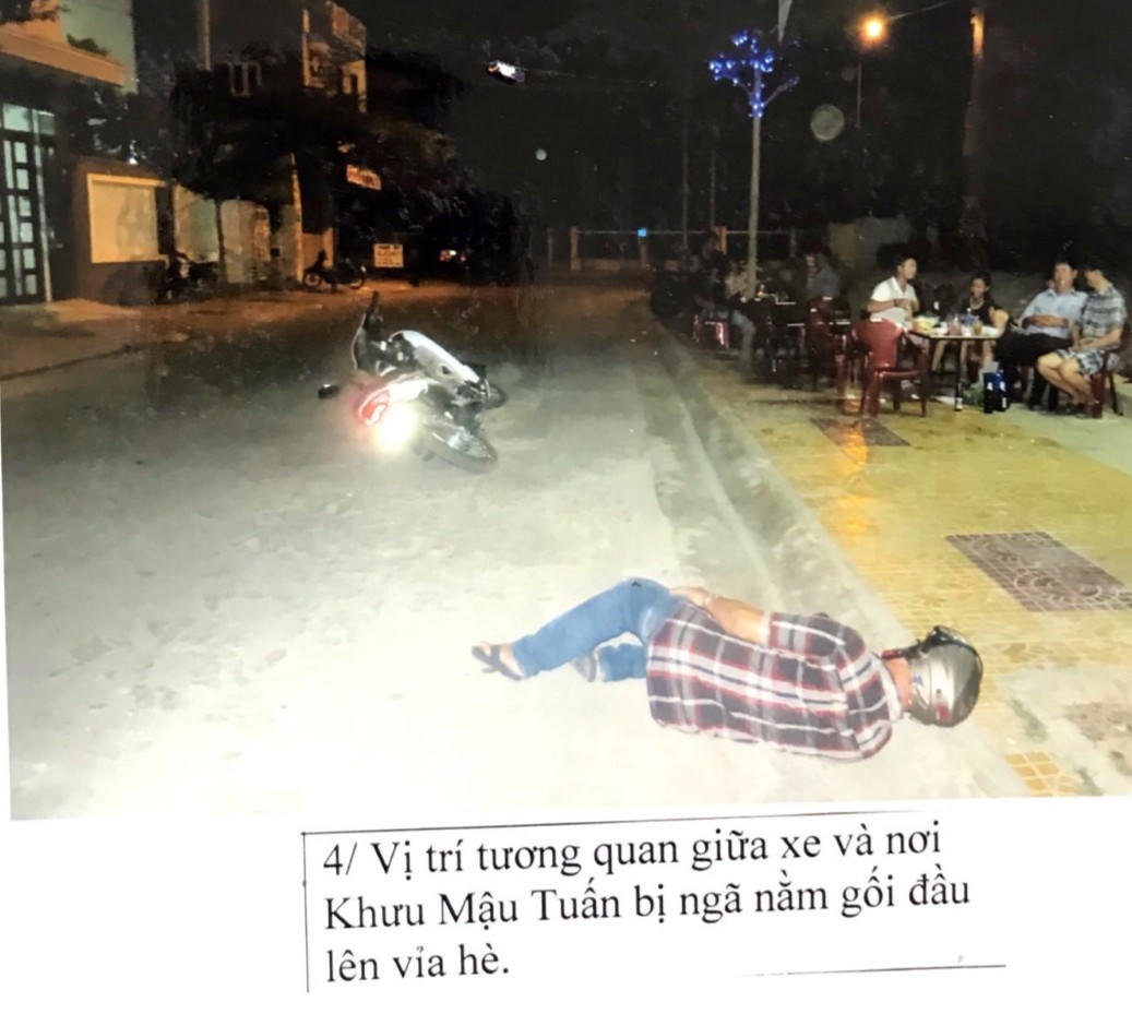 Khoảng 19h50, ông Tuấn quàng túi xách vào gương chiếu hậu bên trái, phần giỏ xách đặt trên baga giữa xe máy. Ông Tuấn đi được khoảng 732m, đến số nhà 88 đường Nguyễn Thị Định (phường Kinh Dinh) thì bị một người đi xe máy cùng chiều tác động một lực vào đuôi xe bên trái làm xe ông Tuấn ngã xuống đường.