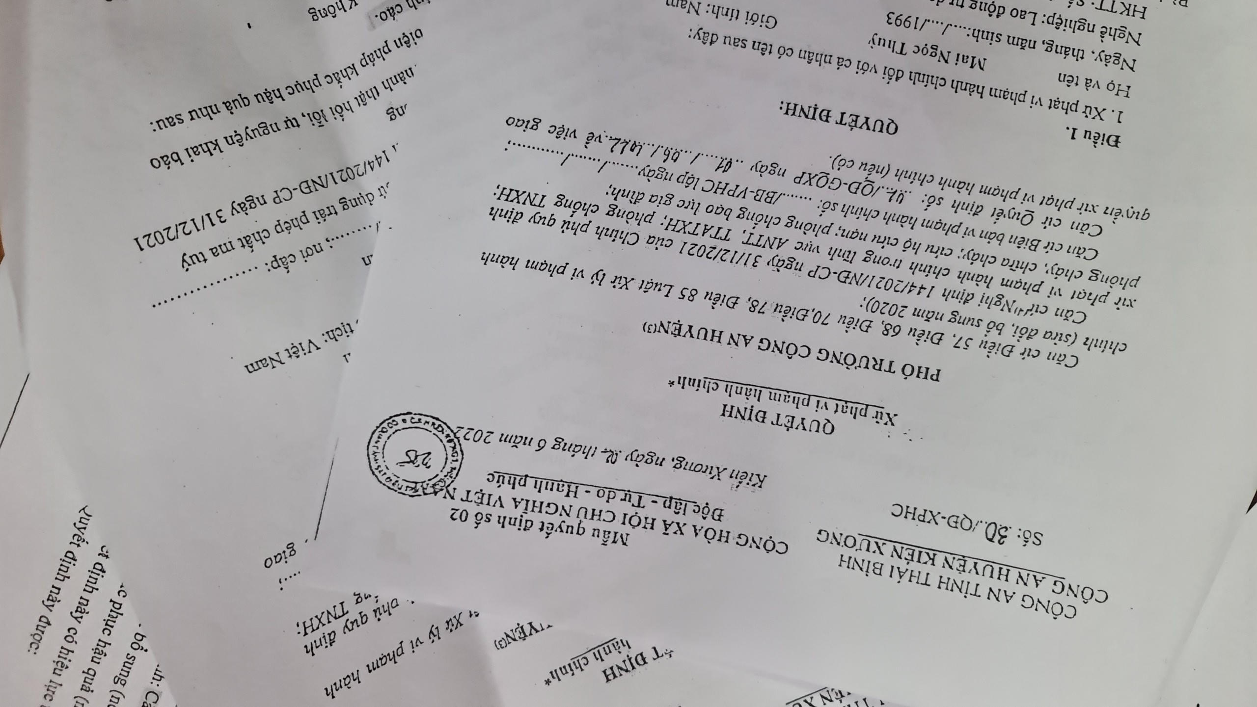 Ngày 02/6/2022, CA huyện đã ký 03 Quyết định xử phạt vi phạm hành chính đối với 03 bị can về hành vi: Sử dụng trái phép chất ma túy, theo khoản 1 Điều 23 Nghị định 144/2021/NĐ-CP |