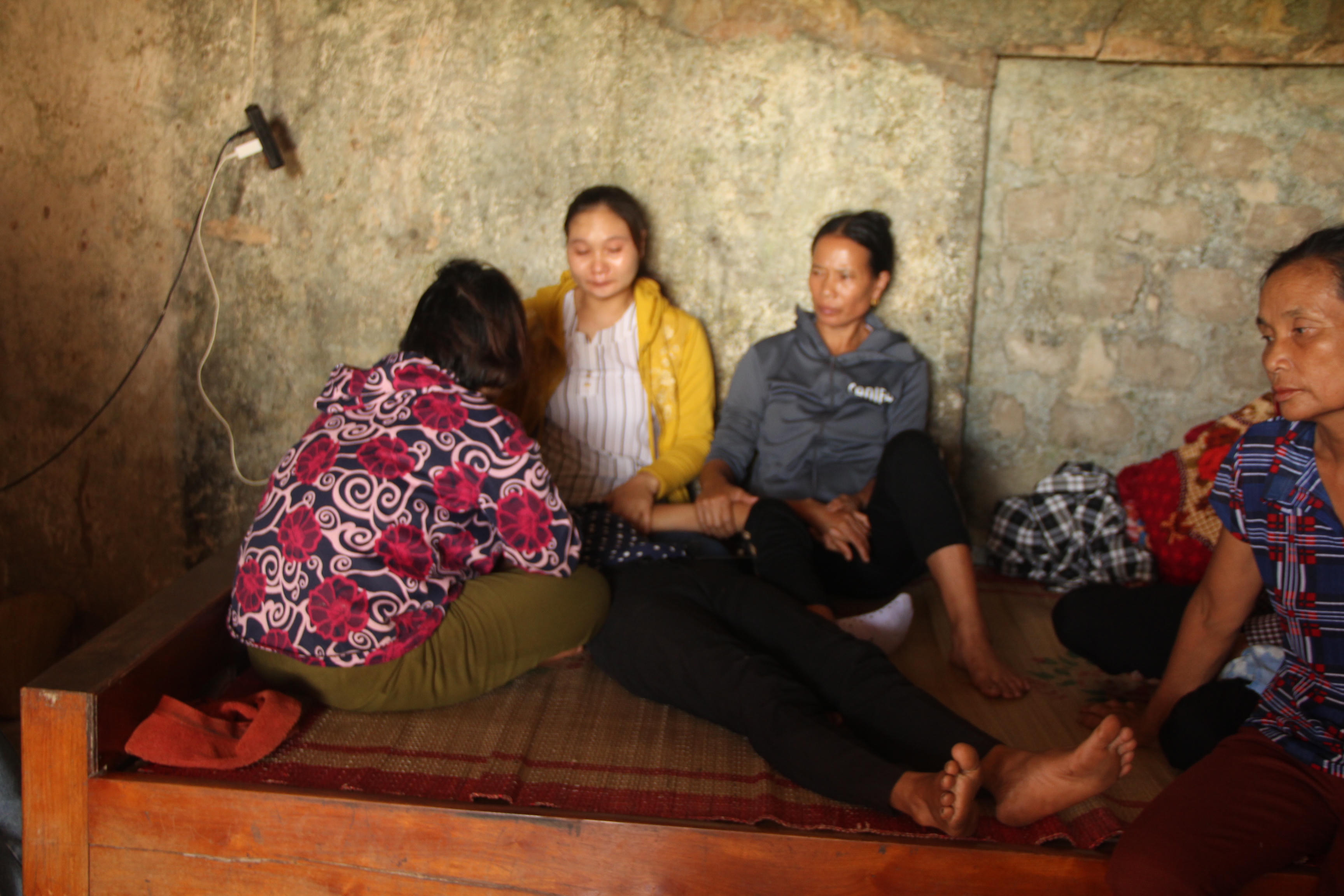 Trong nhà, chị Trần Thị Trí (SN 1982) chỉ biết nằm khóc ngất trên giường, gọi tên con trong vô vọng. Người thân phải ở bên túc trực bên chị đề phòng trường hợp bất trắc.