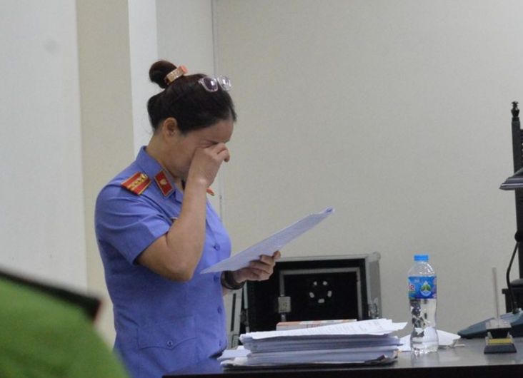 Kiểm sát viên khóc trong quá trình công bố cáo trạng. |