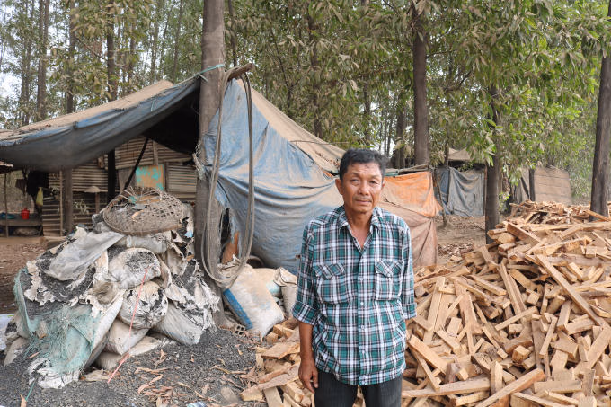 Ông Huỳnh Ngọc Ngà, con trai cụ Lê Thị Phương Mai đang phải đốt than kiếm sống qua ngày trên mảnh đất vốn trước đây là “bờ xôi, ruộng mật” của gia đình cụ