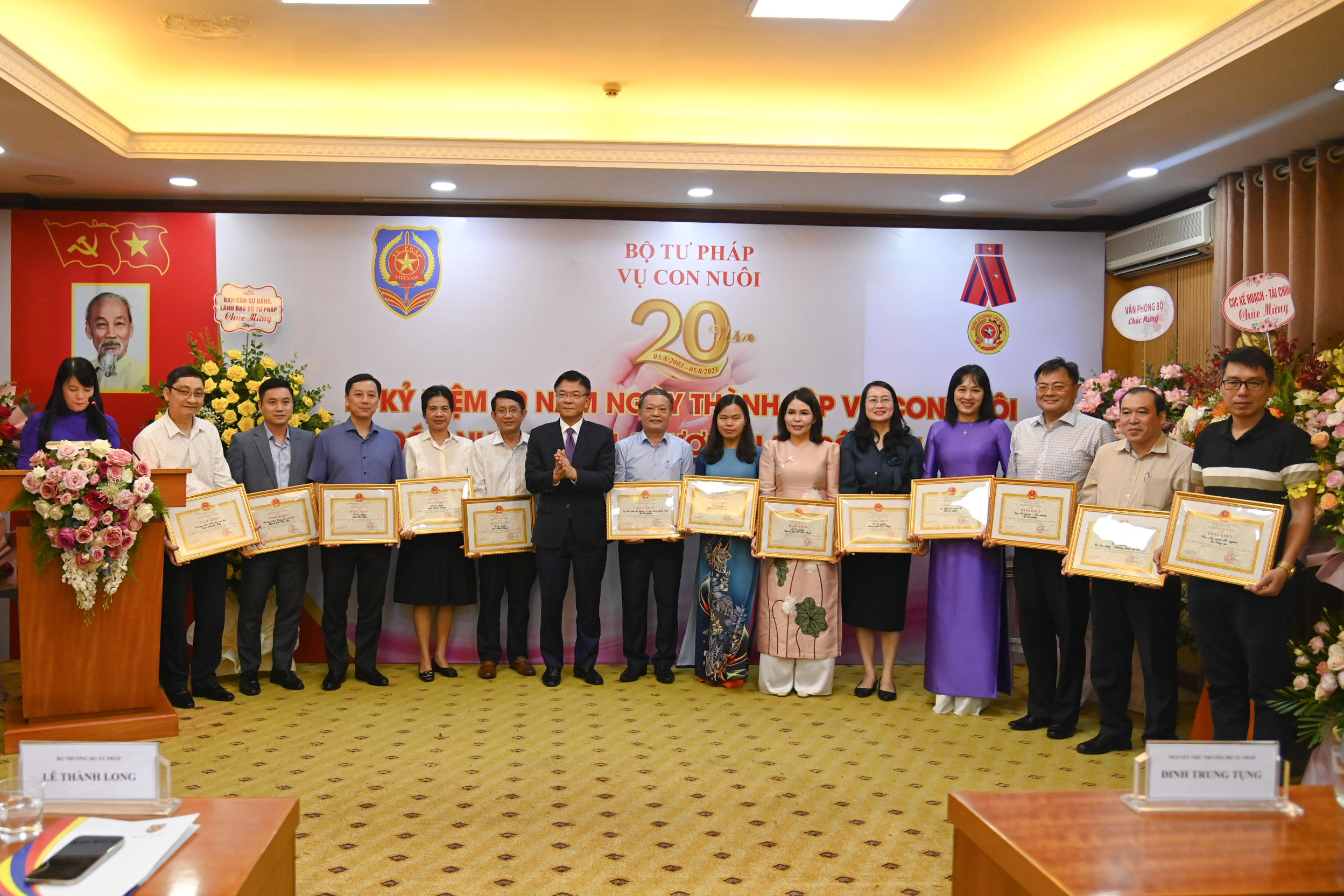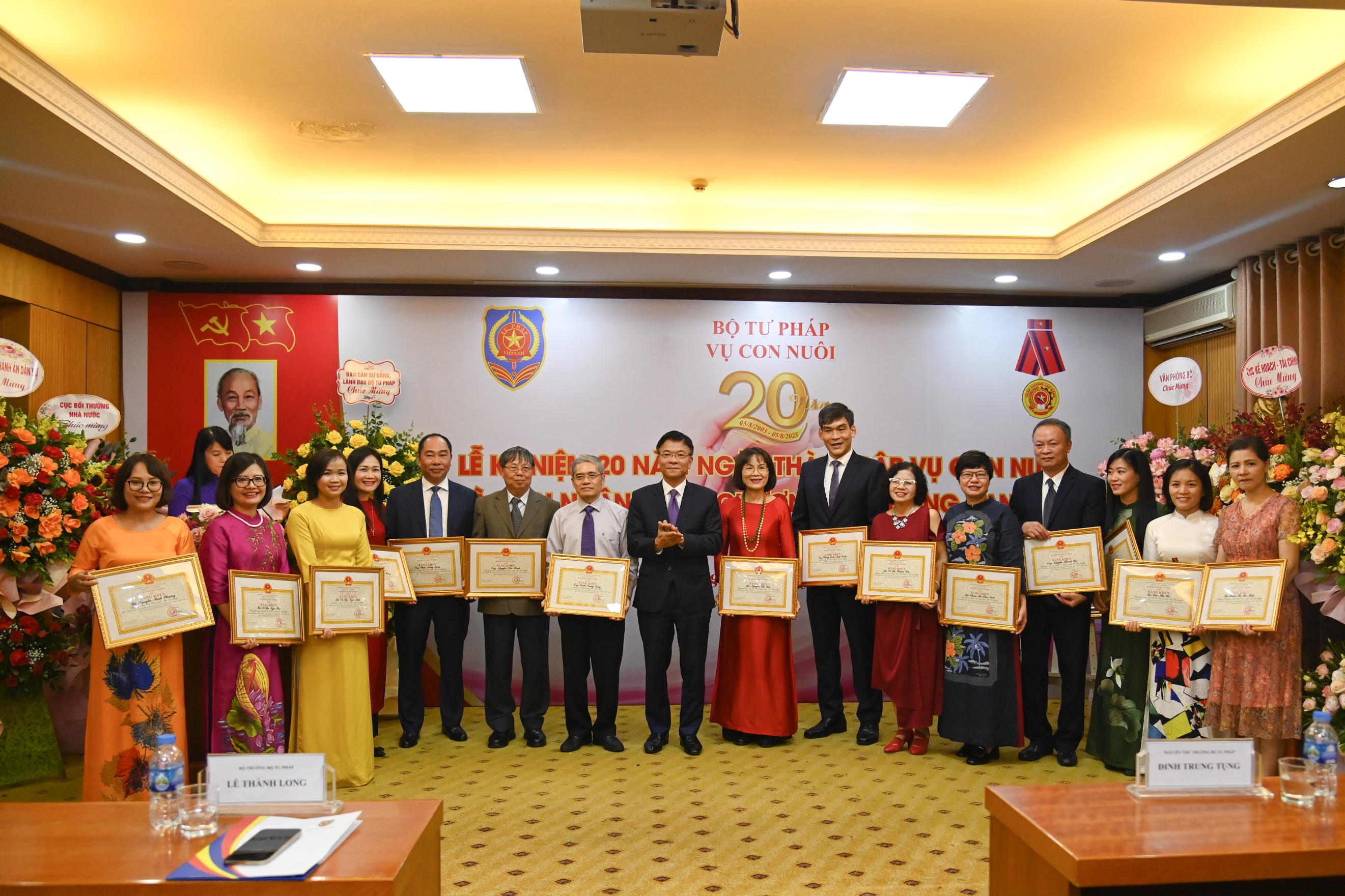 Nhân dịp này, Bộ trưởng Lê Thành Long đã trao tặng Huân chương Lao động hạng Ba cho Vụ Con nuôi và tặng Bằng khen của Bộ trưởng Bộ Tư pháp cho 13 tập thể, 15 cá nhân có thành tích xuất sắc đóng góp cho quá trình 20 năm xây dựng và phát triển Vụ Con nuôi.
