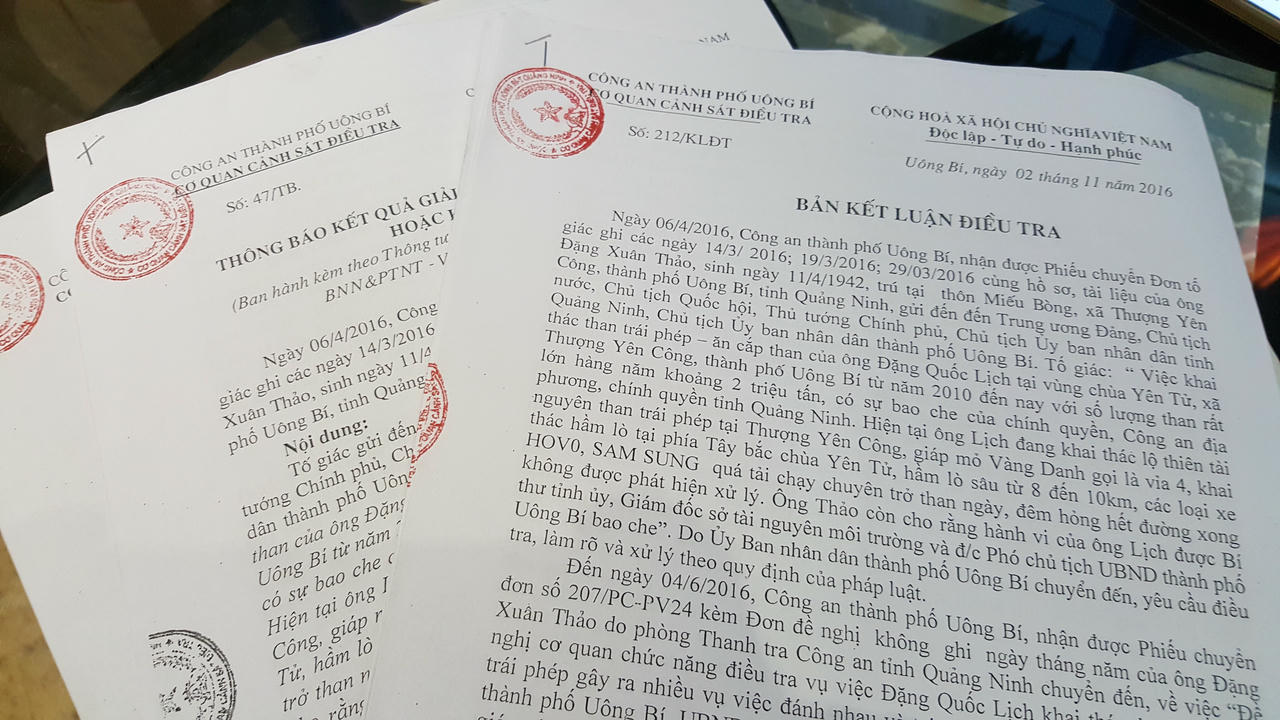 Căn cứ vào tài liệu điều tra đã thu thập được, Cơ quan CSĐT – Công an TP Uông Bí xác định: Những nội dung tố cáo của ông Đặng Xuân Thảo nêu trong đơn tố giác là không có căn cứ, không có sự việc phạm tội.