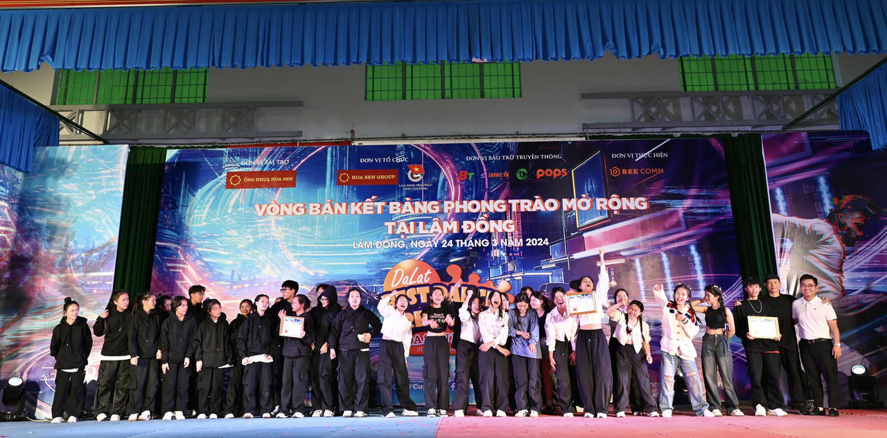 Ngày 24/3, tại TP Bảo Lộc (Lâm Đồng) đã diễn ra bán kết Bảng phong trào mở rộng của Dalat Best Dance Crew 2024 - Hoa Sen Home International Cup. Sàn đấu có sự tham gia của 25 nhóm nhảy đến từ các huyện, thị xã, trường đại học, cao đẳng tại tỉnh Lâm Đồng.