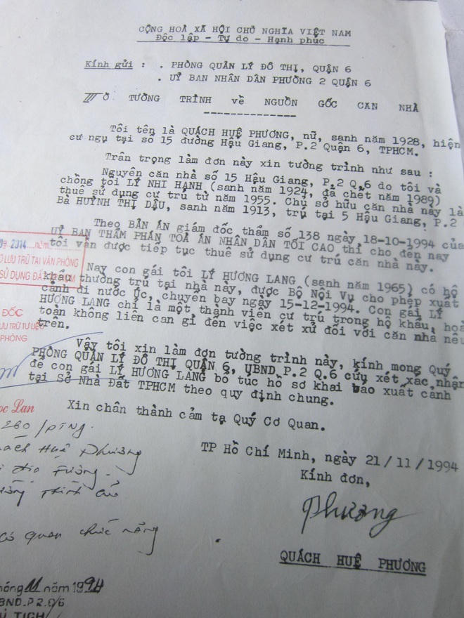 “Nội tôi “ra đi” không nhắm được mắt. Trước khi “đi”, nội đã nhờ người thảo lại bản di chúc ủy quyền lại cho anh em chúng tôi được quyền làm các thủ tục đòi lại tài sản đã mất.