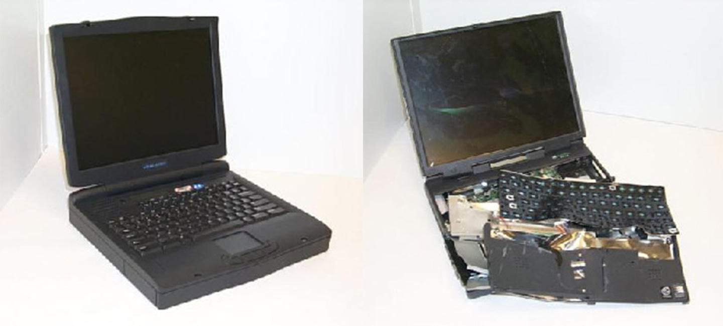 | Một chiếc laptop bị các thành viên phi hành đoàn EP-3 Aries II phá hủy theo cách thức “thủ công” (Nguồn: Báo cáo Hải quân Mỹ và NSA) |