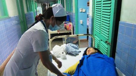 | Các nạn nhân ngộ độc được kê thêm giường nằm tràn ra hành lang Bệnh viện Hữu nghị Việt Nam - Cu Ba Đồng Hới. |