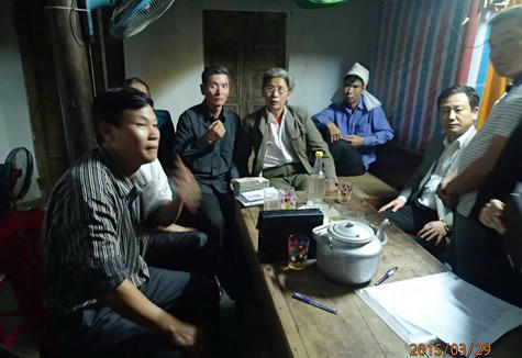 | Trao tiền hỗ trợ gia đình các nạn nhân vụ sập giàn giáo công trường Formosa ở tỉnh Quảng Bình ngày 30/3. |