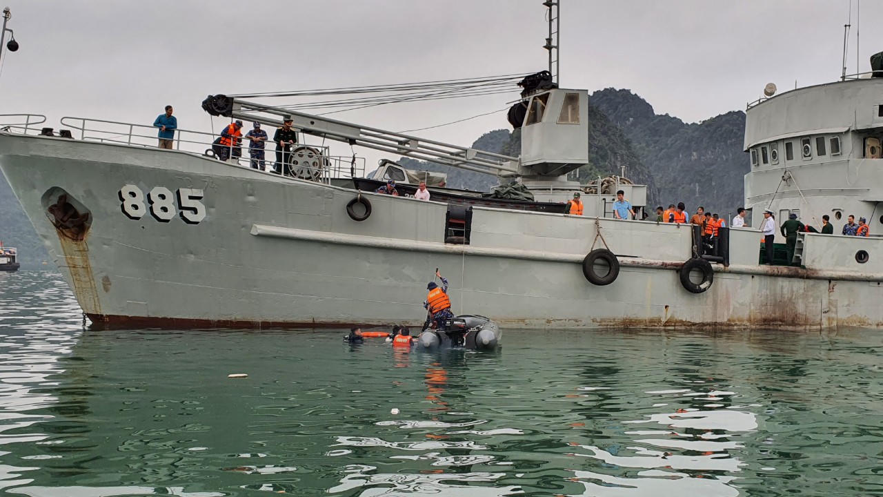 Về phía Quảng Ninh, Bộ CHQS tỉnh được giao chủ trì đã nhanh chóng thành lập Sở Chỉ huy phía trước. Tại hiện trường, các lực lượng CHCN tiến hành triển khai theo đúng kế hoạch, sử dụng các phương tiện hiện đại tổ chức tìm kiếm đạt hiệu suất cao.