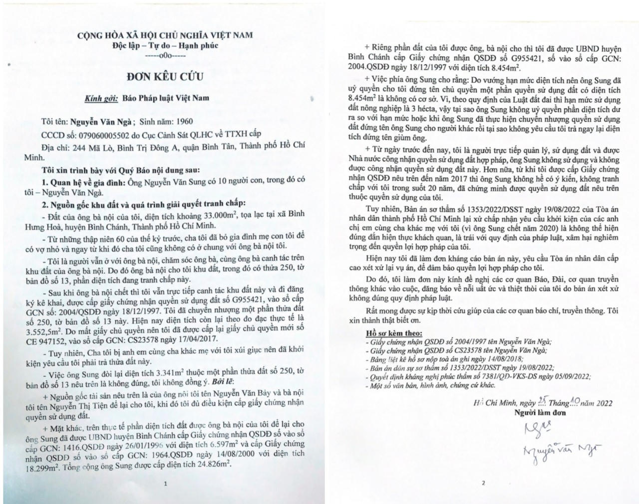 Không đồng tình với phán quyết, ông Ngà có đơn kháng cáo toàn bộ Bản án sơ thẩm 1353/2022/DS-ST ngày 19/8/2022.